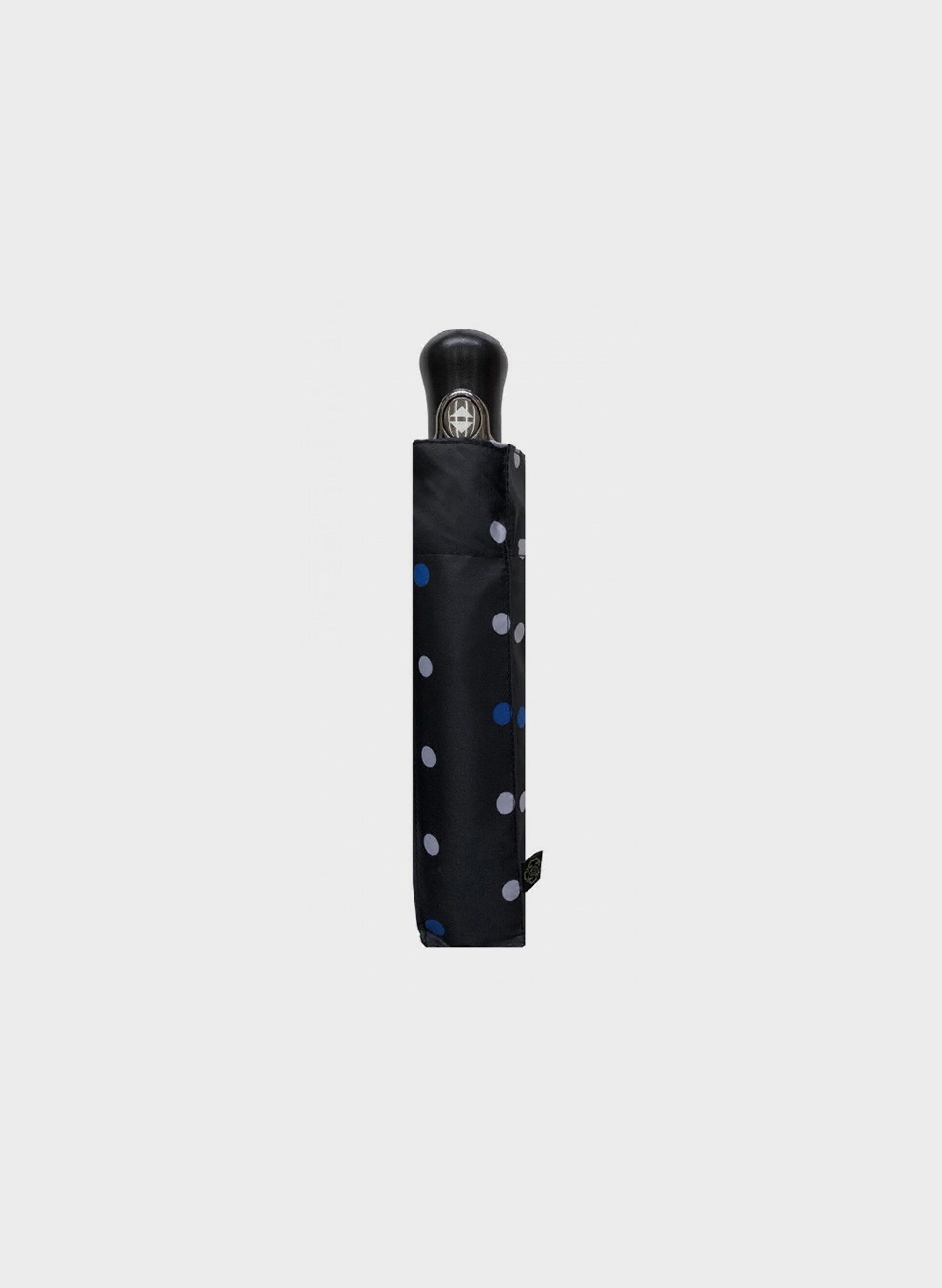 Ombrello unisex con fantasia a pois. Manico richiudibile con apertura a scatto e comodo fodero per riporre l'ombrello in borsa.