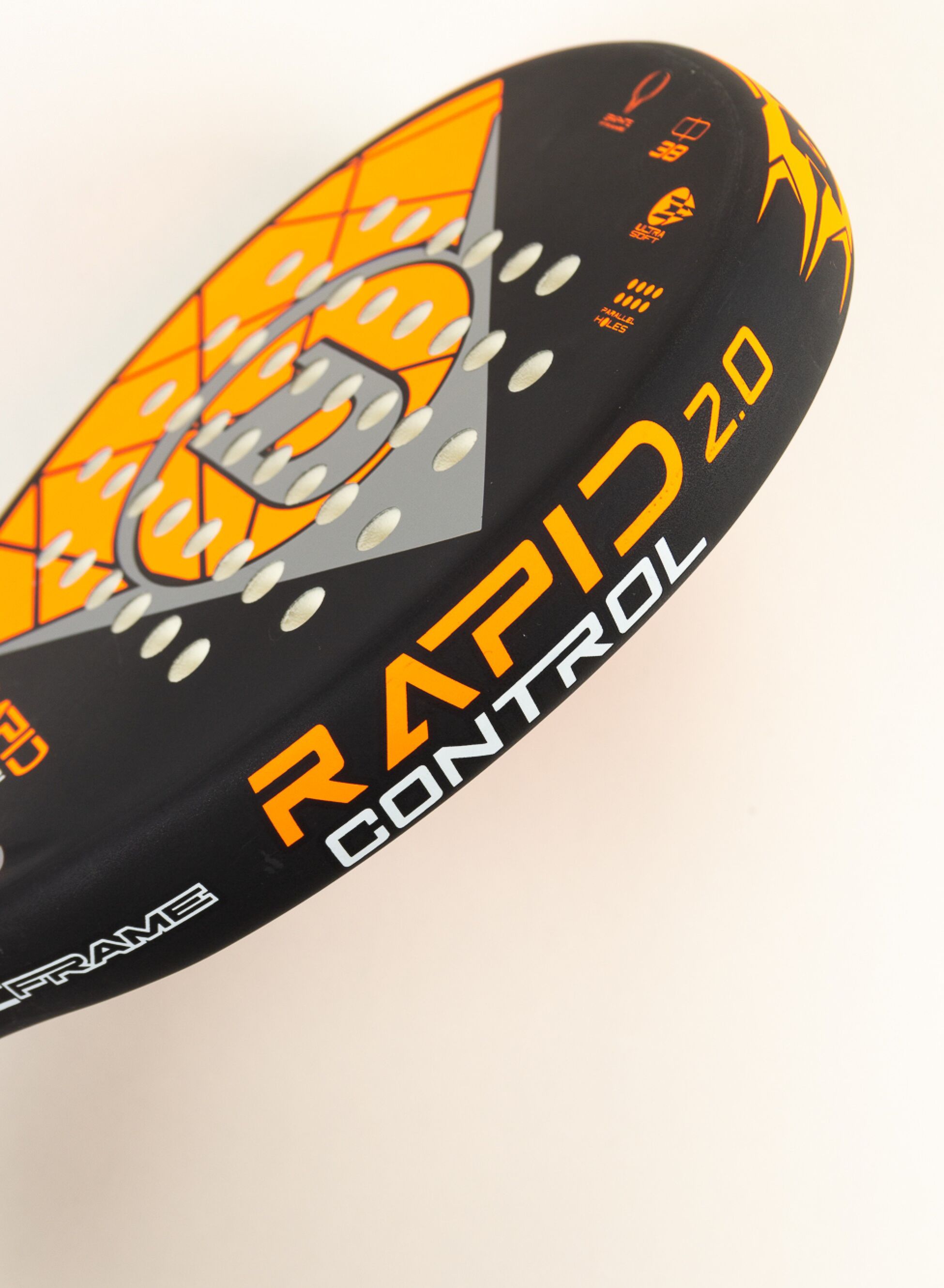Racchetta da Padel RAPID CONTROL 2.0. Struttura in graphite ideale per principianti e giocatori occasionali. Testa rotonda con un ampio sweetspot che garantisce controllo eccezzionale, nucleo Ultra Soft per un comfort extra e peso più leggero.