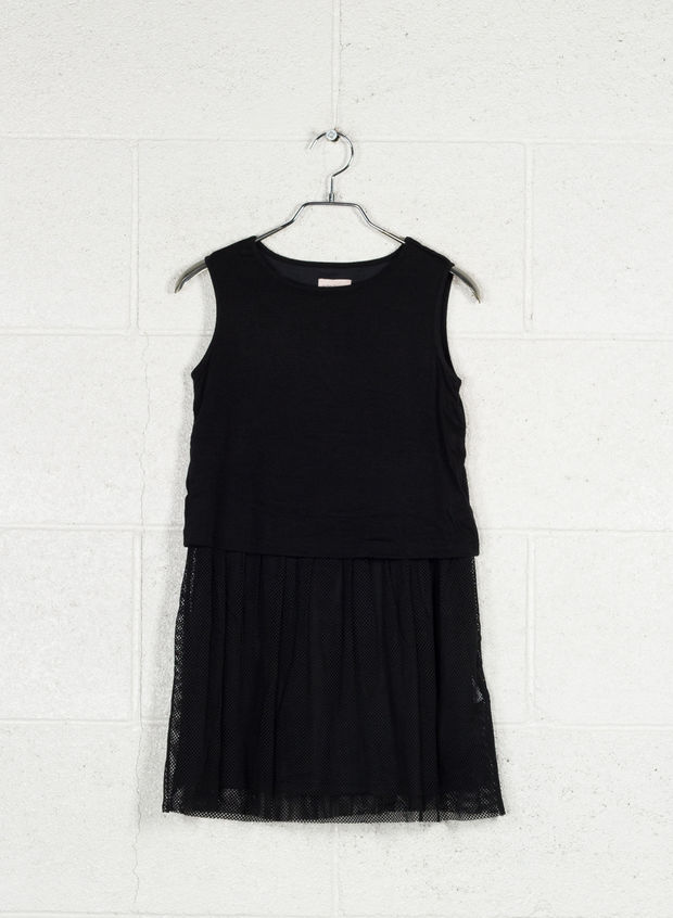 Abito giromanica con gonna svasata in tessuto a rete.