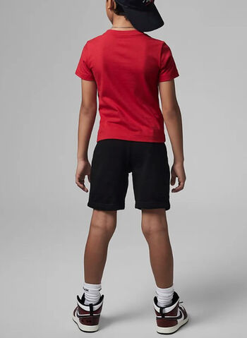 Completo da bambino Jordan con t-shirt realizzata in cotone a girocollo e a maniche corte e short con elastico e laccetto in vita in tessuto.