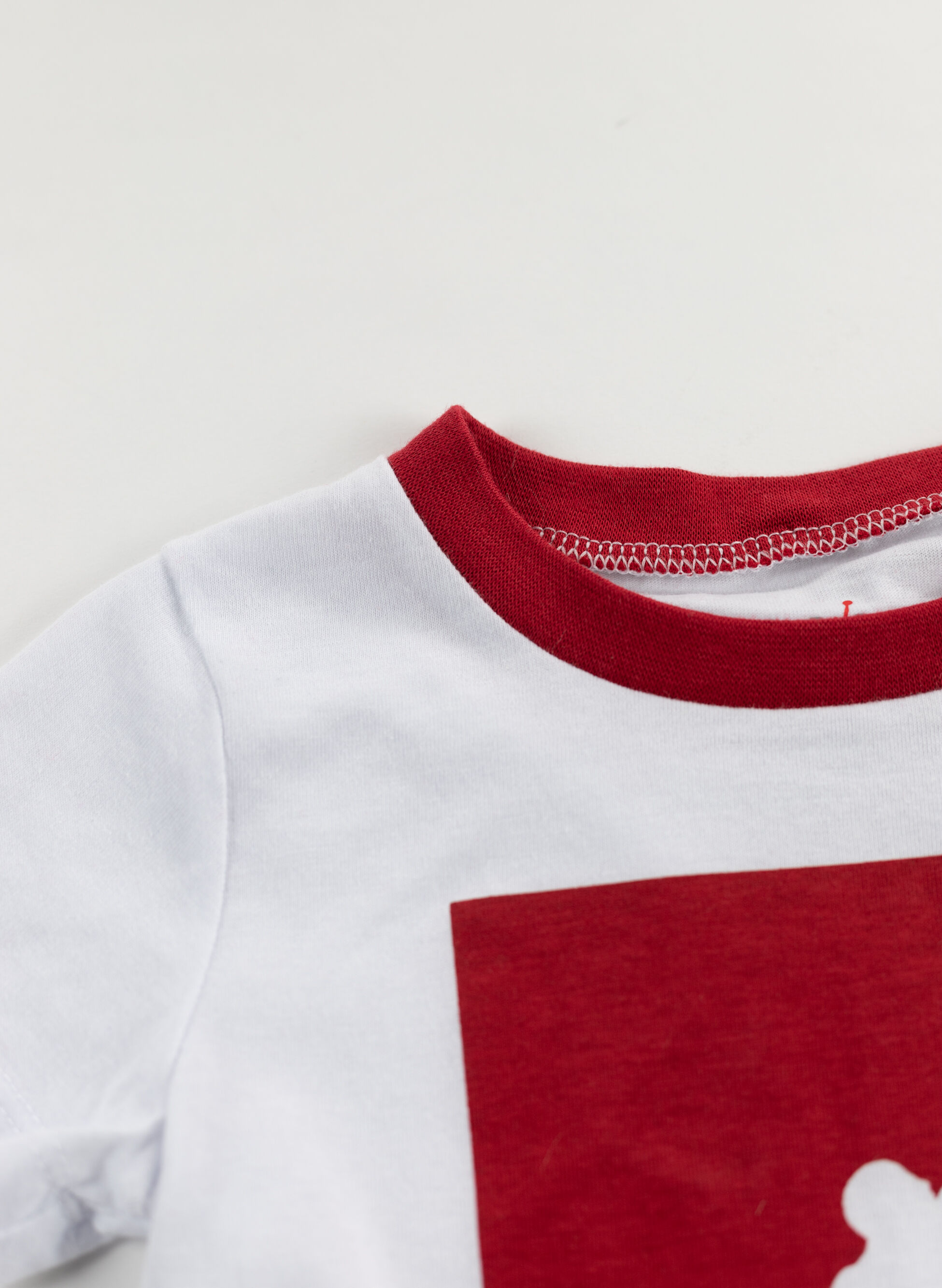 T-shirt a girocollo e a maniche corte. Short con elastico e laccetto in vita in tessuto.