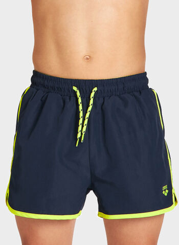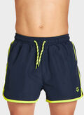 Boxer mare da ragazzo in poliestere con slip interno in mesh e girovita elasticizzato con lacci all'esterno.