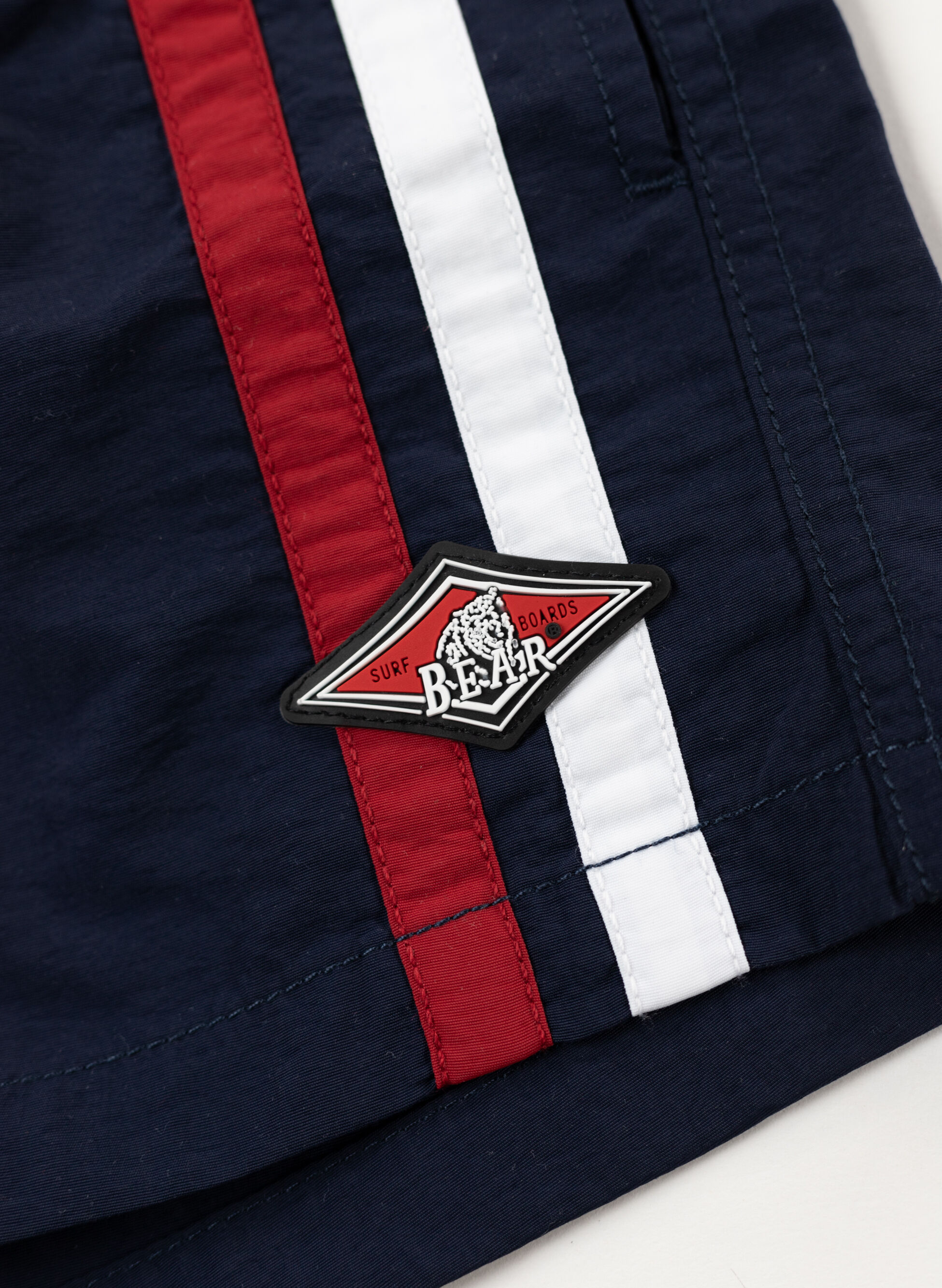 Costume Bear da ragazzo modello boxer con piccolo logo in gomma sulla gamba a sinistra e bande a contrasto.