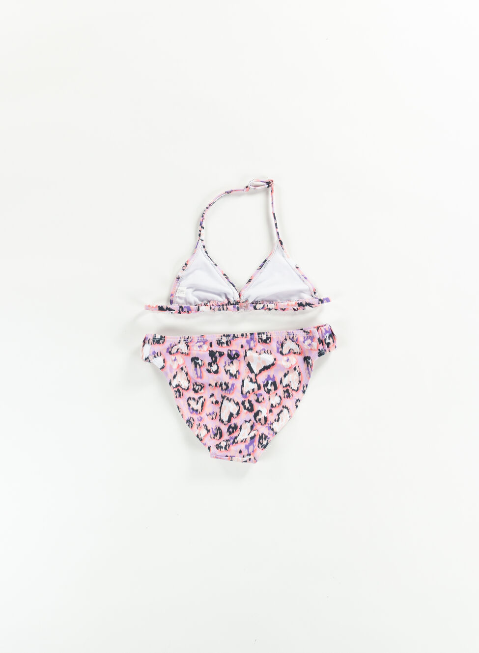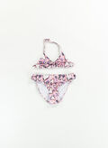 Costume modello bikini da ragazza con top a triangolo e laccetti regolabili.