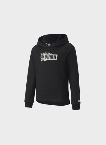 Felpa Puma da ragazza con cappuccio e coulisse realizzata in tessuto in misto cotone con interno felpato ideale nelle giornate più fredde.