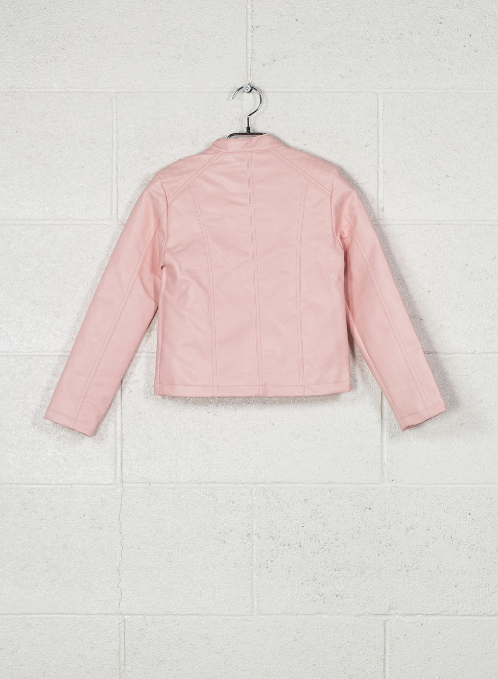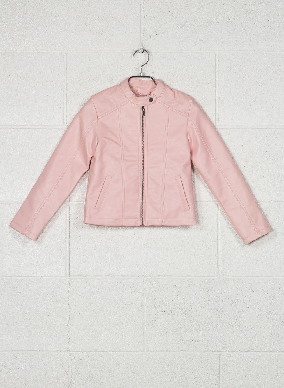 Giacca in ecopelle rosa da ragazza.