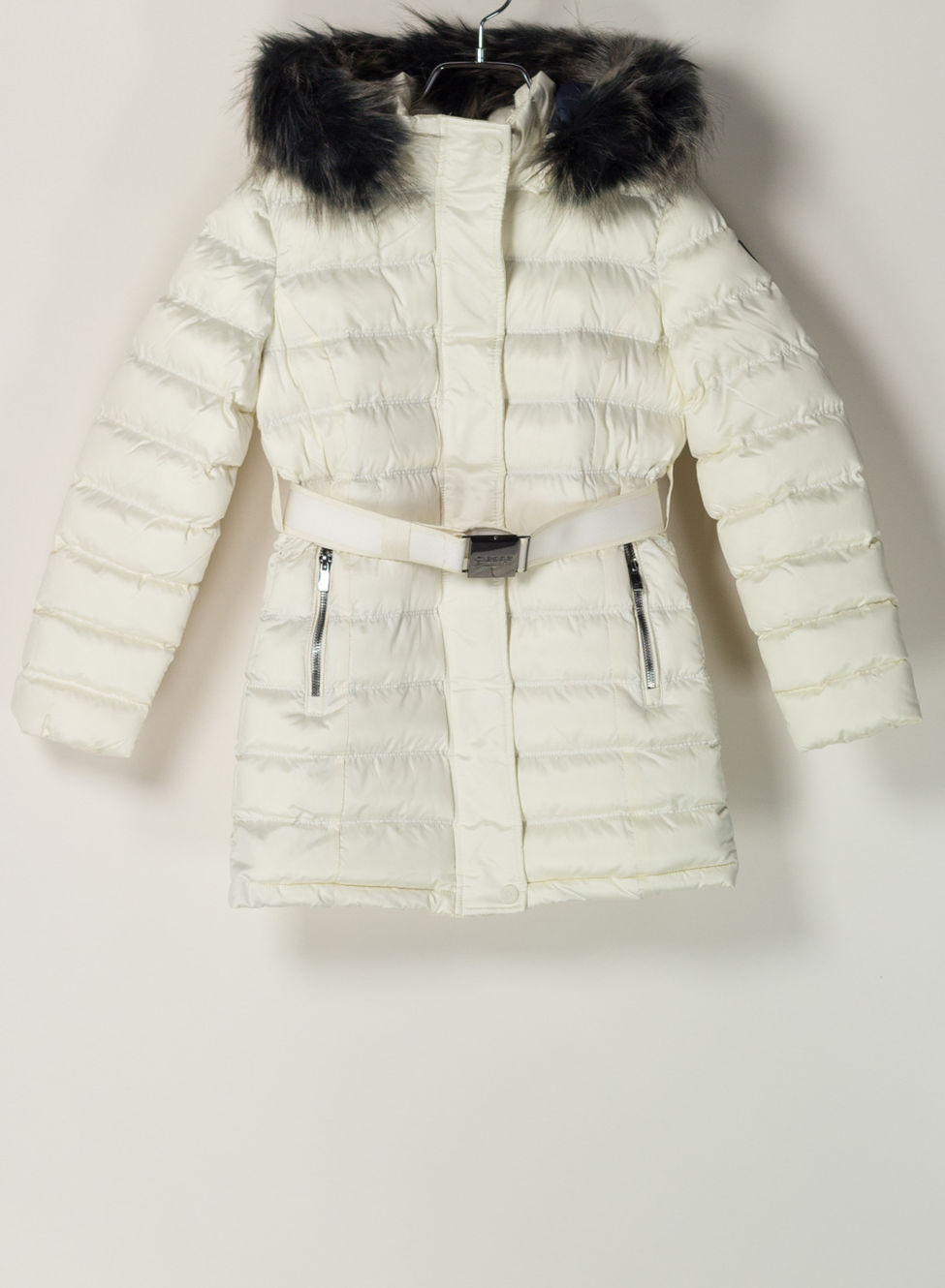 Giaccone da ragazza con cappuccio e pelliccia staccabili.