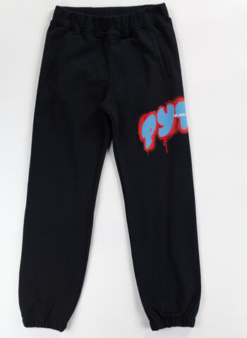 Pantalone sportivo da ragazzo realizzato in cotone con tessuto interno garzato.