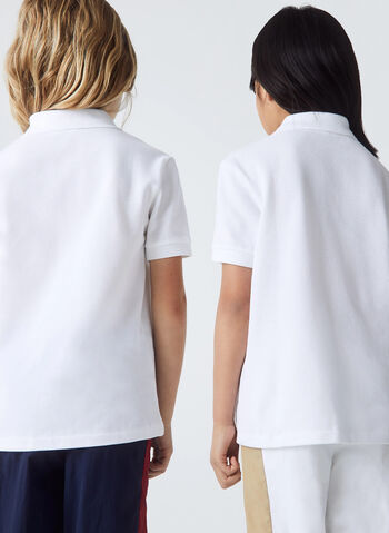 Polo da ragazzo in piquè di cotone a maniche corte e colletto classico con due bottoni.