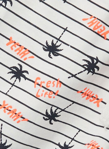 Short da ragazza realizzato in cotone elasticizzato con fantasia palme all over.