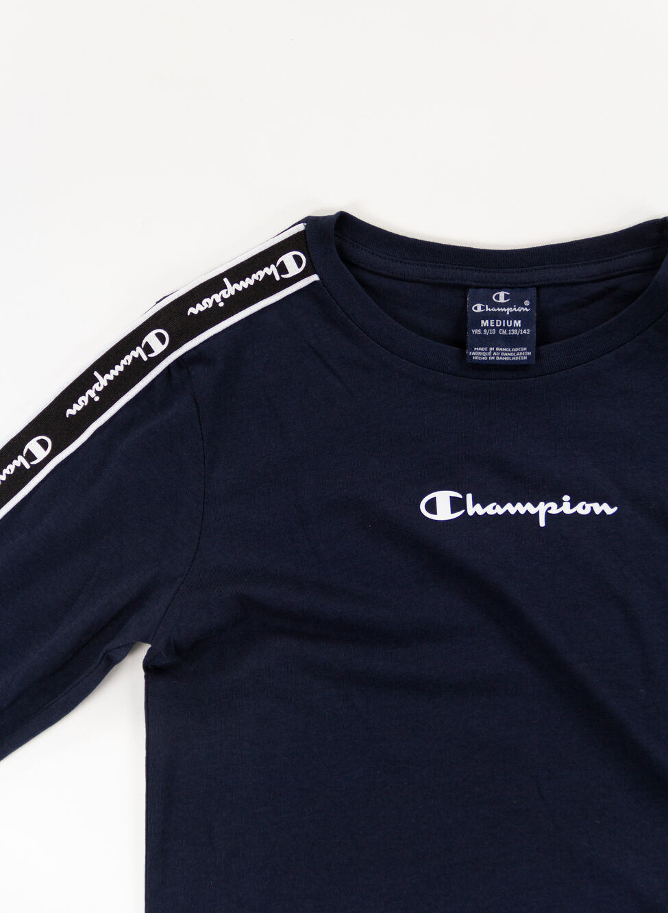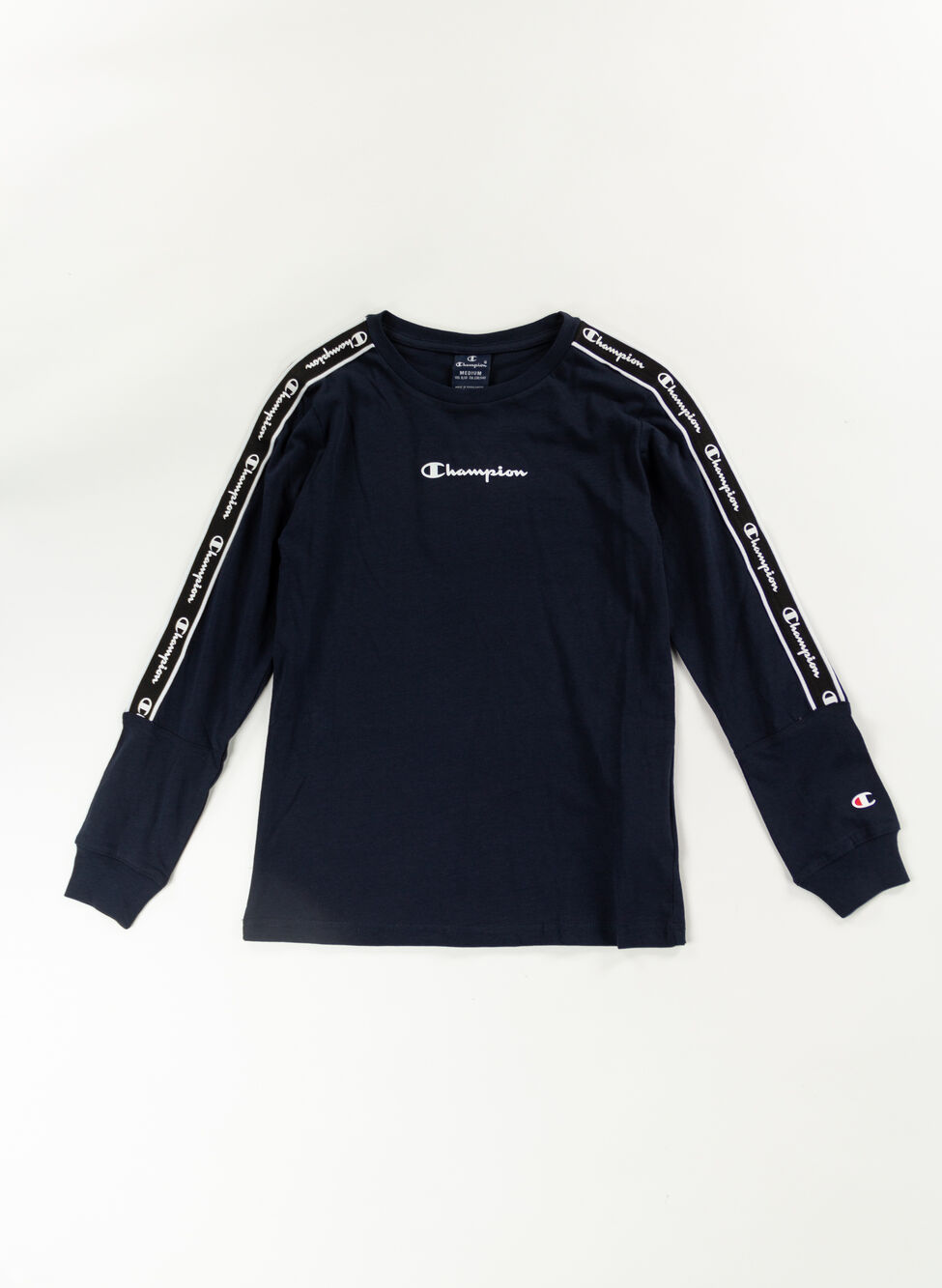 Girocollo e polsini a costine e inserto lungo le maniche con logo Champion ripetuto.