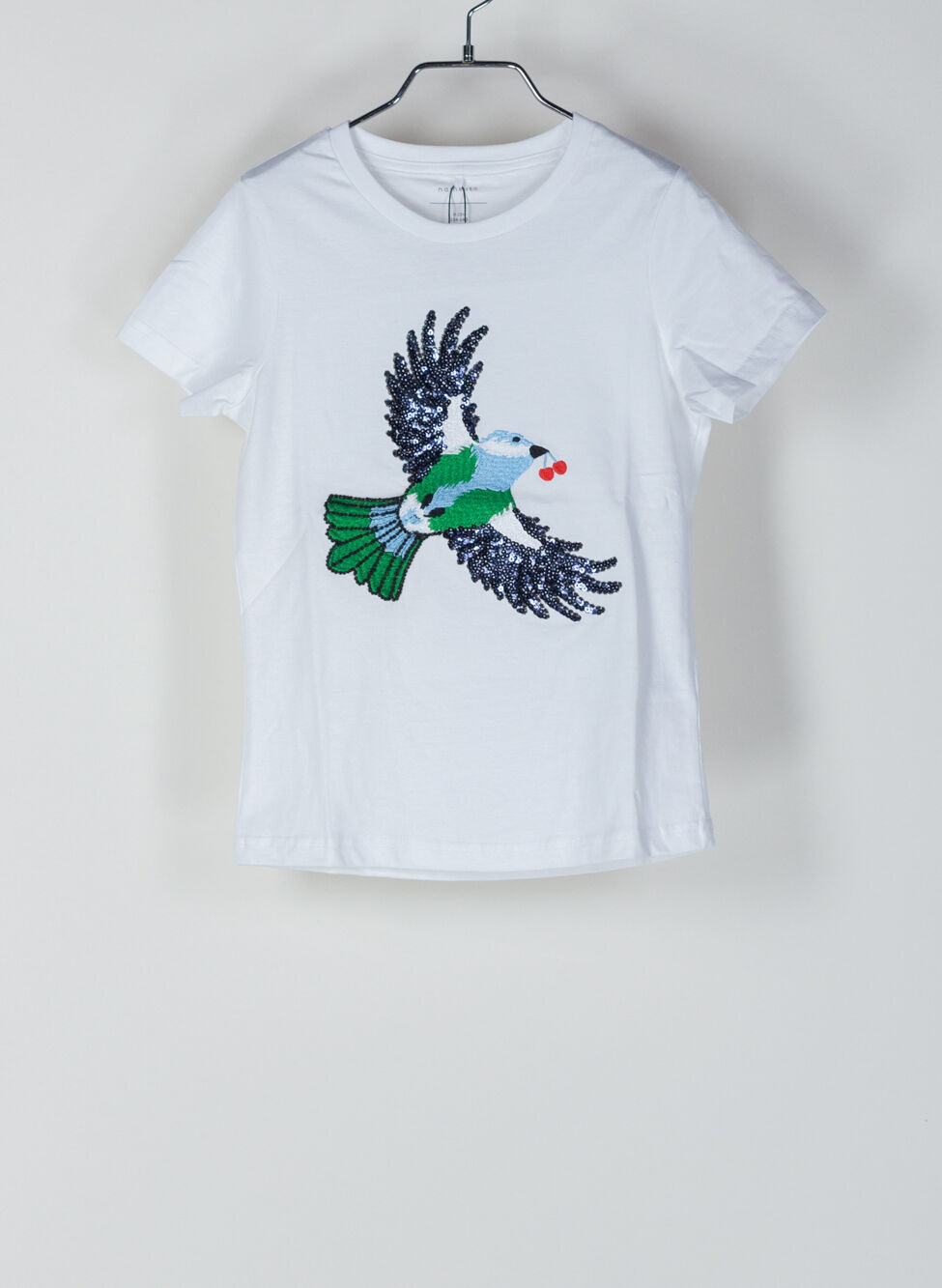 Ricamo frontale con decorazioni in paillettes.