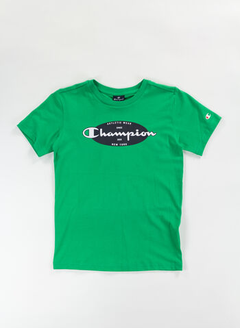 T-shirt Champion da ragazzo con stampa frontale.