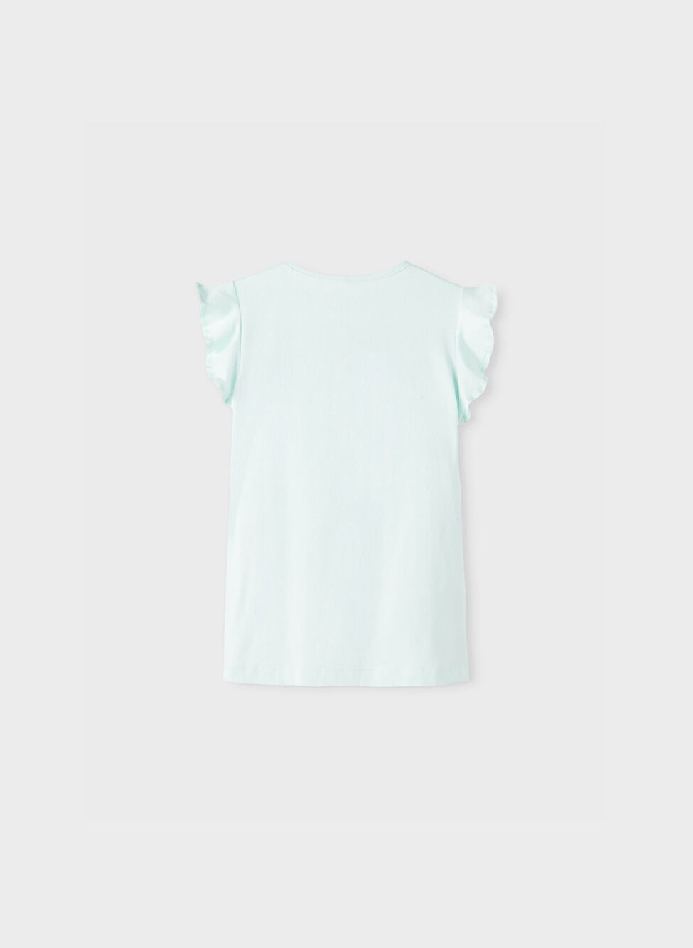 T-shirt da bambina dal taglio regolare con maniche corte a volant e girocollo.