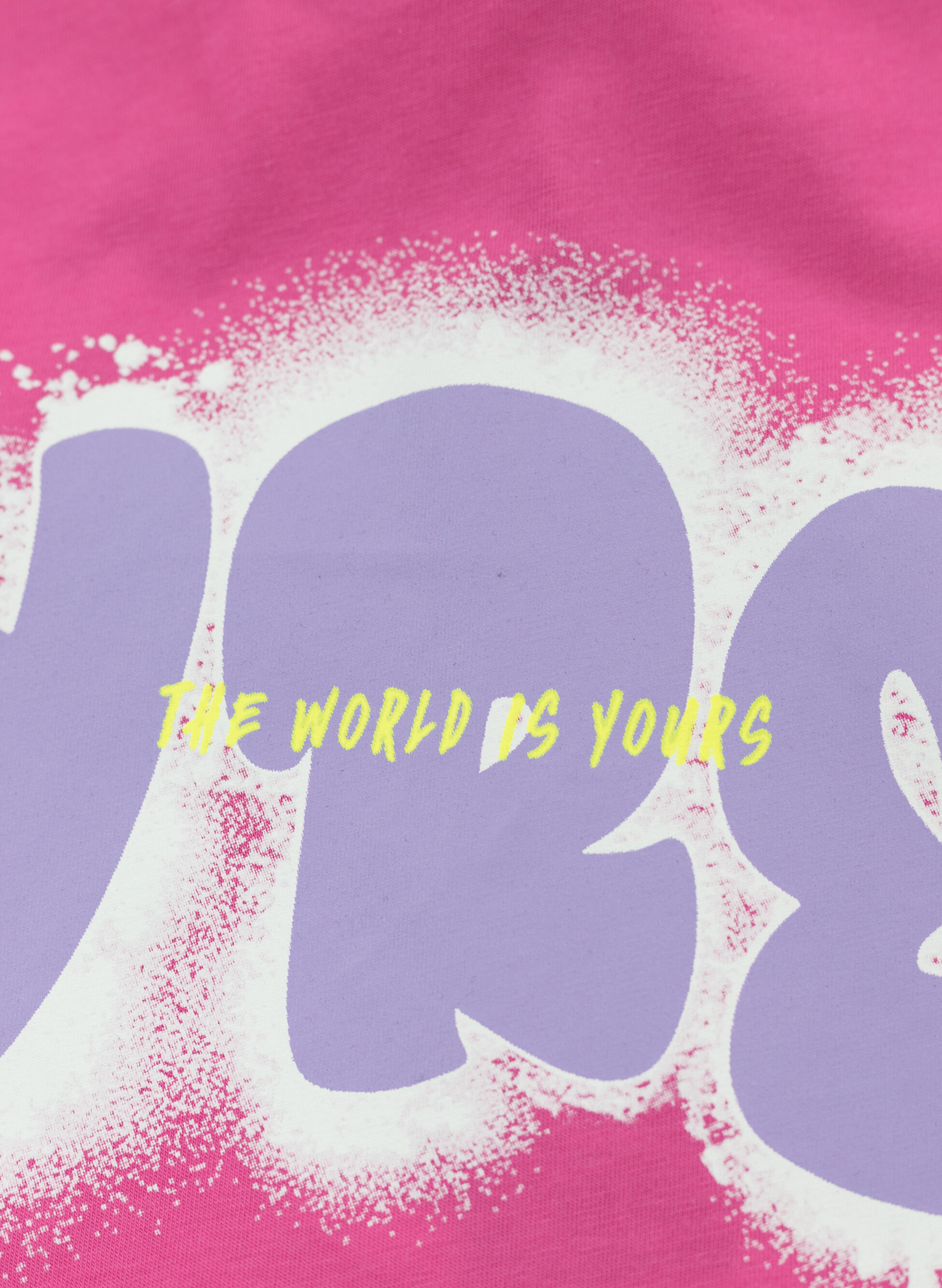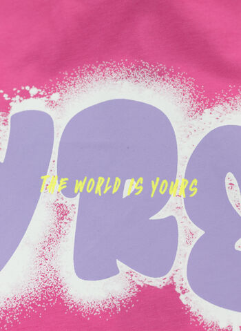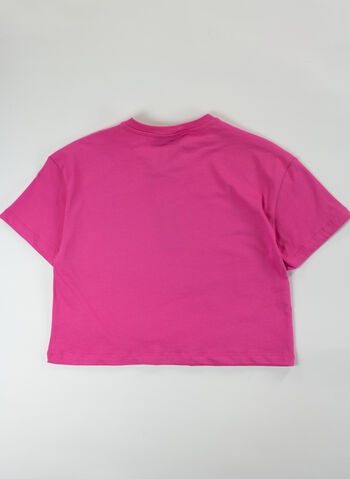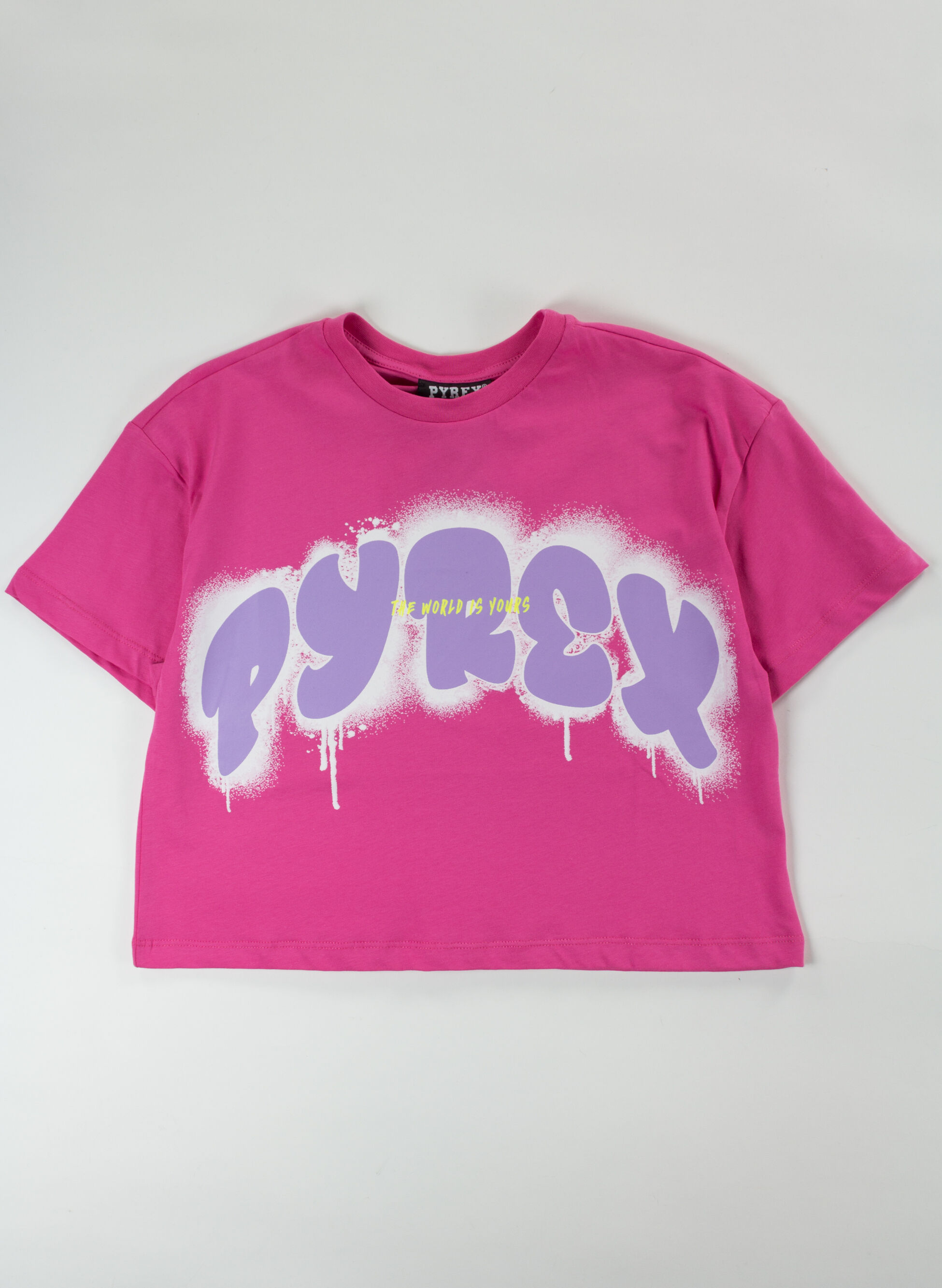 T-shirt crop Pyrex da ragazza con maniche corte e stampa spray frontale.