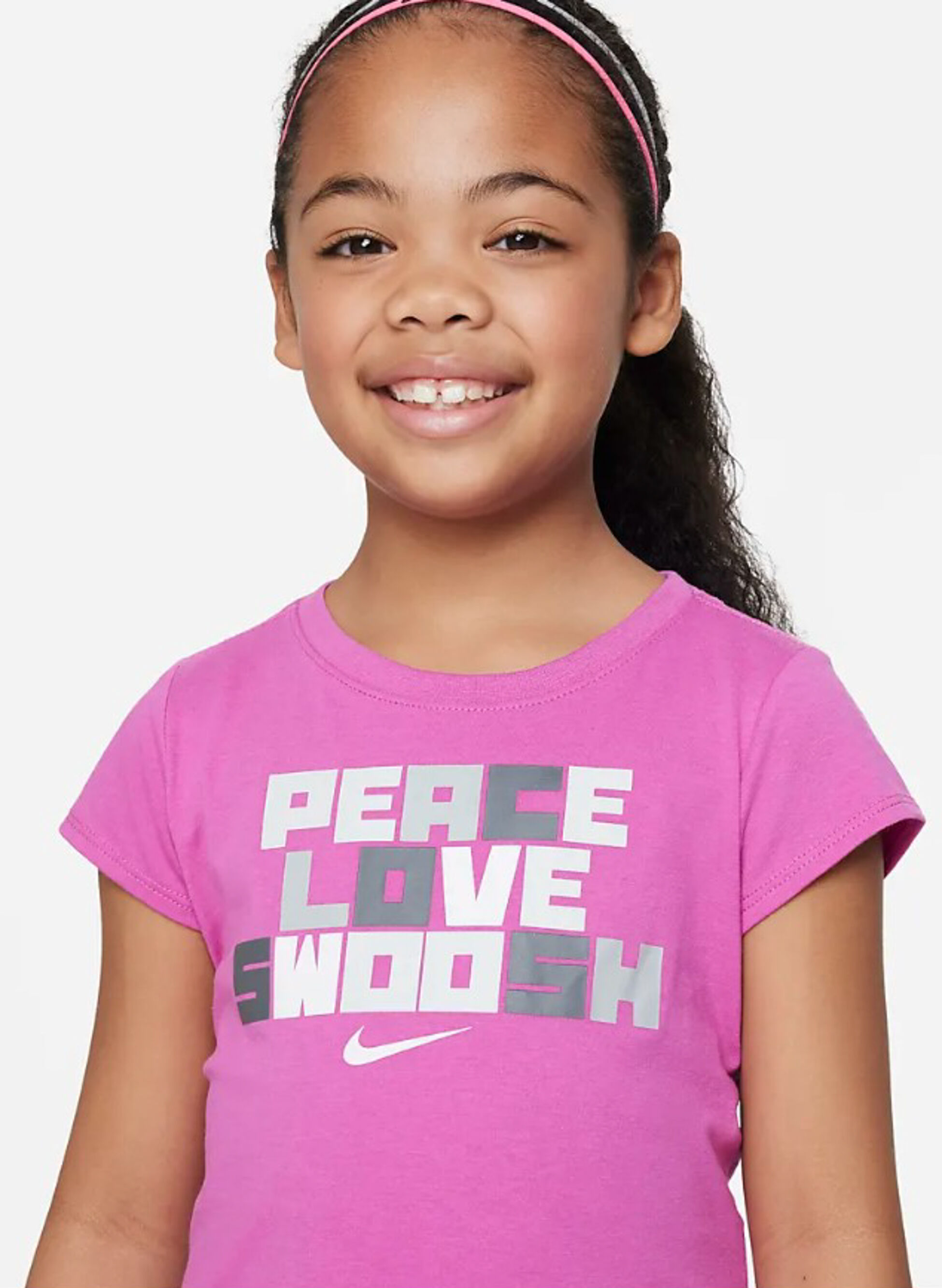 T-shirt Nike da bambina realizzata in tessuto leggero e stampa lettering frontale.