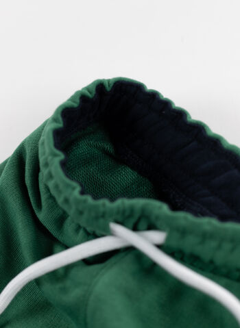 Pantaloni con girovita elasticizzato, coulisse esterna e fondo a costine.