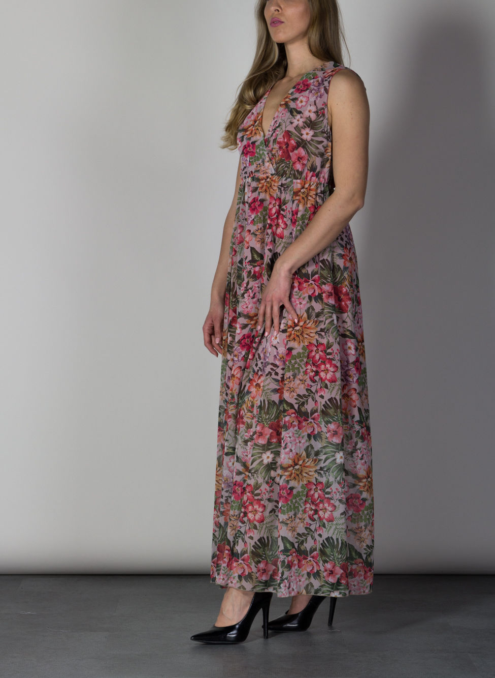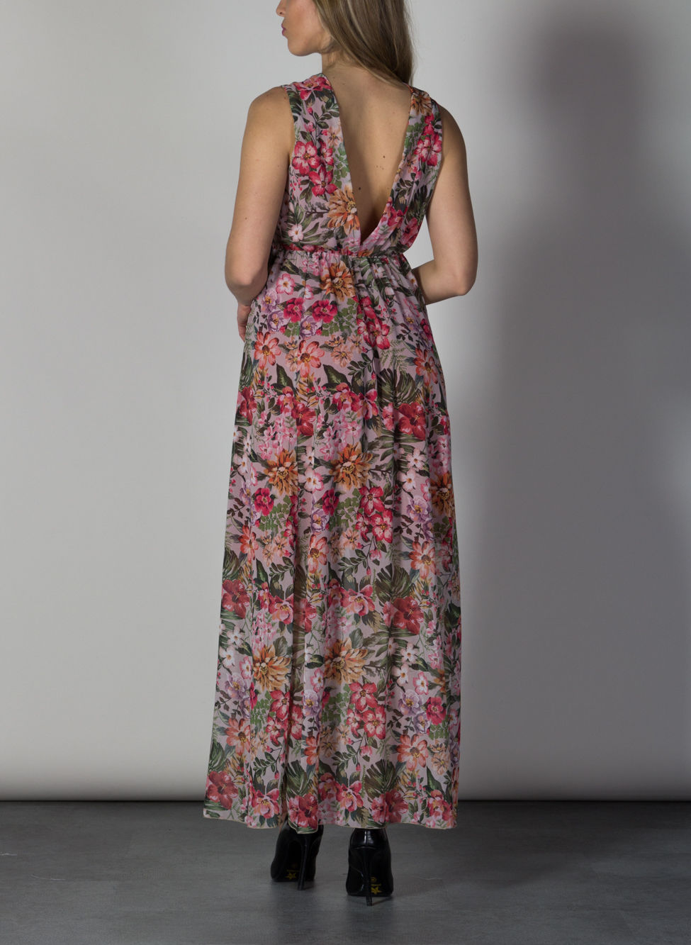 Abito lungo da donna con fantasia floreale.