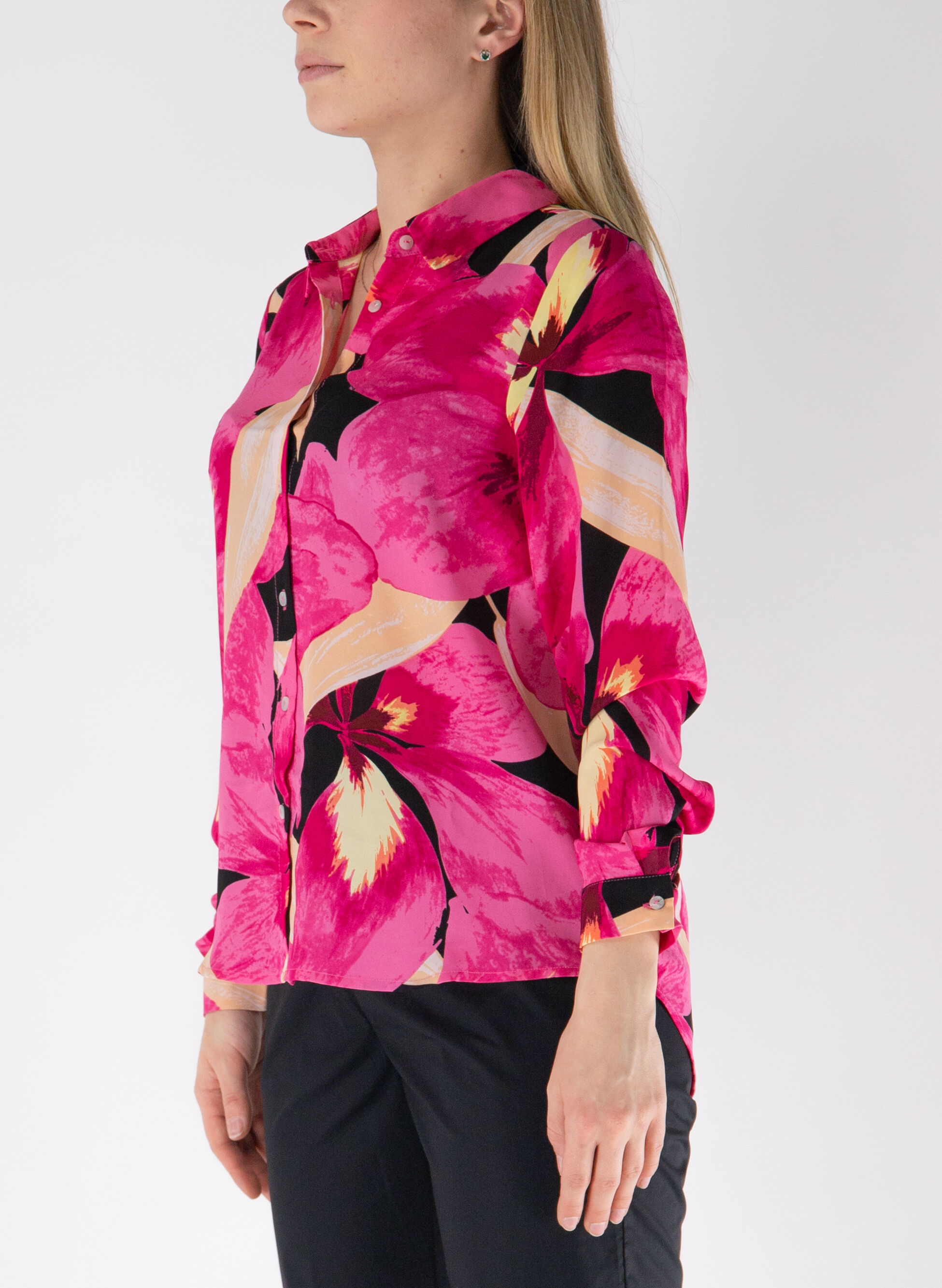 Camicia Only da donna con bottoni centrali, colletto classico e maniche lunghe.