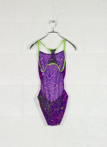 Pensato per sessioni di nuoto intensive e programmi di allenamento impegnativi, questo costume è un modello audace e sportivo al tempo stesso, grazie anche alla stampa che richiama i lampi.