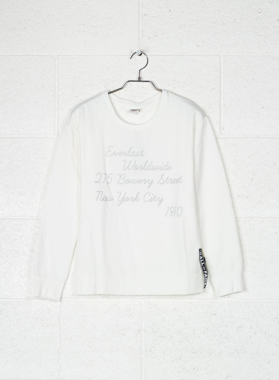 Felpa girocollo con scritta glitter ricamata davanti.