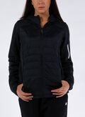 Giacca da donna in doppio tessuto con cappuccio e collo alto realizzata in doppio tessuto ideale per le attività all'aperto.
