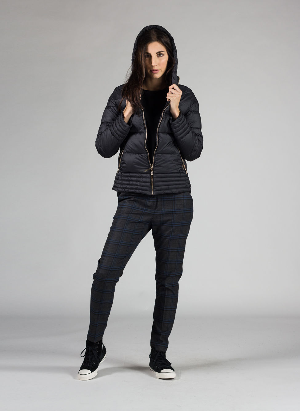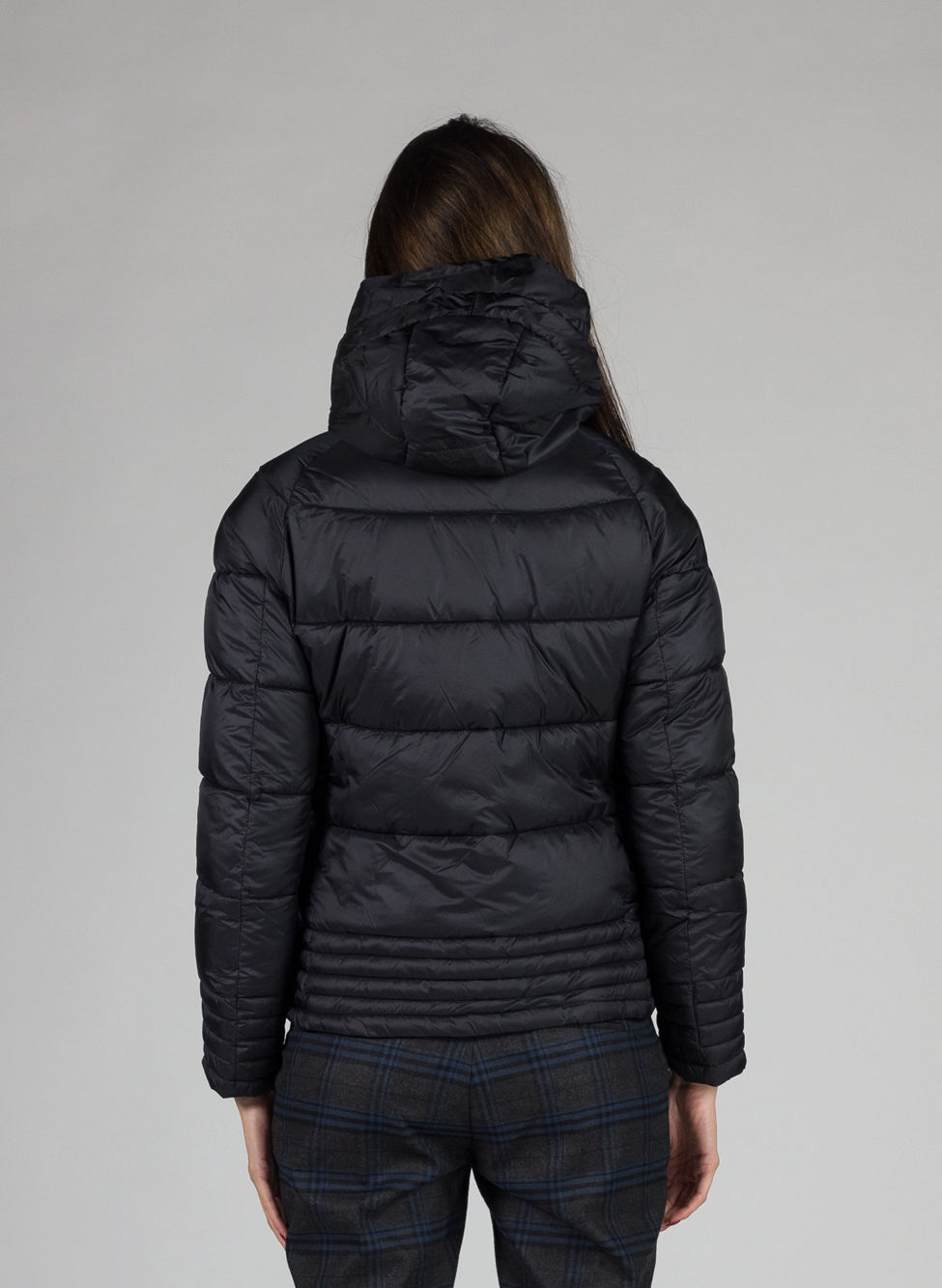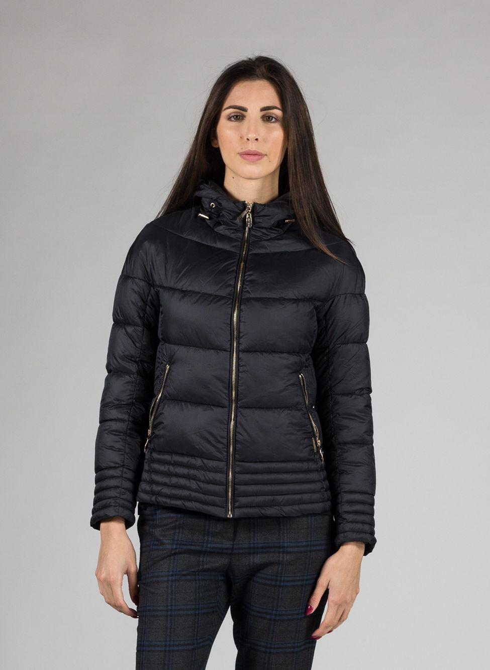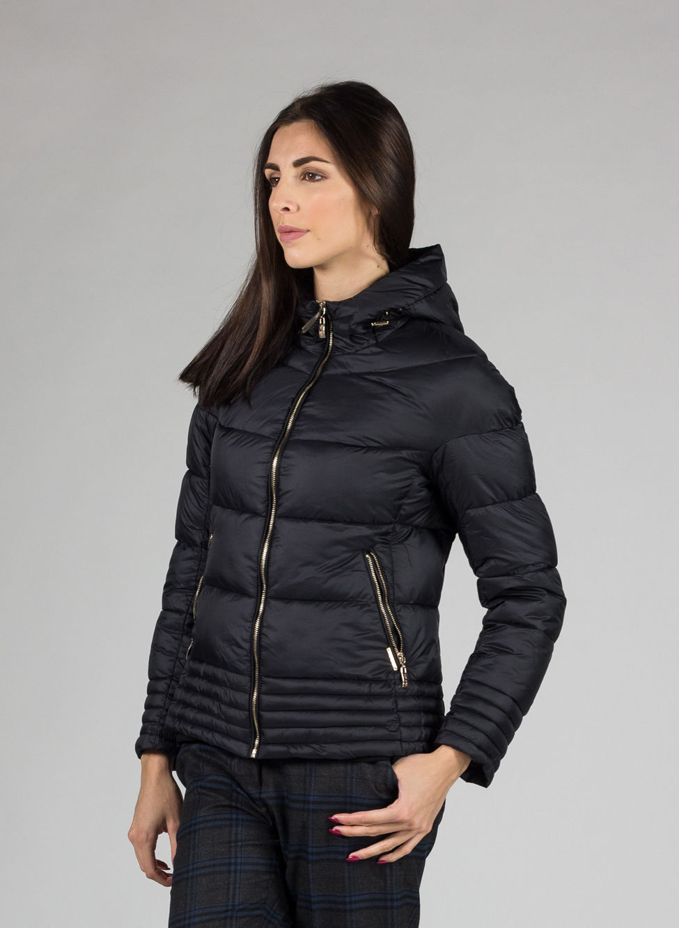 Giubbotto da donna corto con cappuccio.