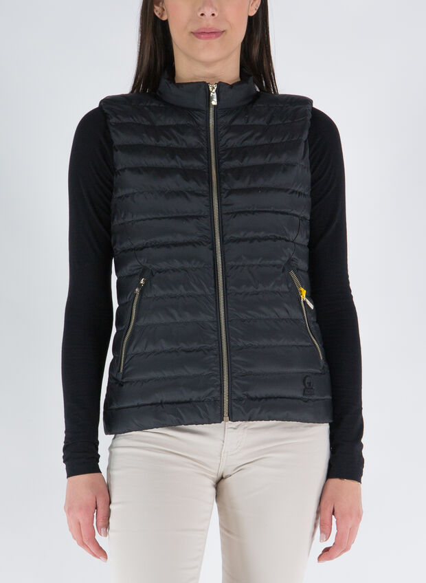 Il piumino Paprika smanicato da donna è un capo di tendenza che unisce comfort e stile. Realizzato in tessuto opaco cady pearl con imbottitura in vera piuma certificata 800 fill power, è caratterizzato da comode ed ampie tasche laterali, bordo elastico in tono sulle spalle, vestibilità slim e logo in tono. Ideale per le mezze stagioni, questo piumino è una soluzione versatile che si adatta a look sportivi e urbani.
