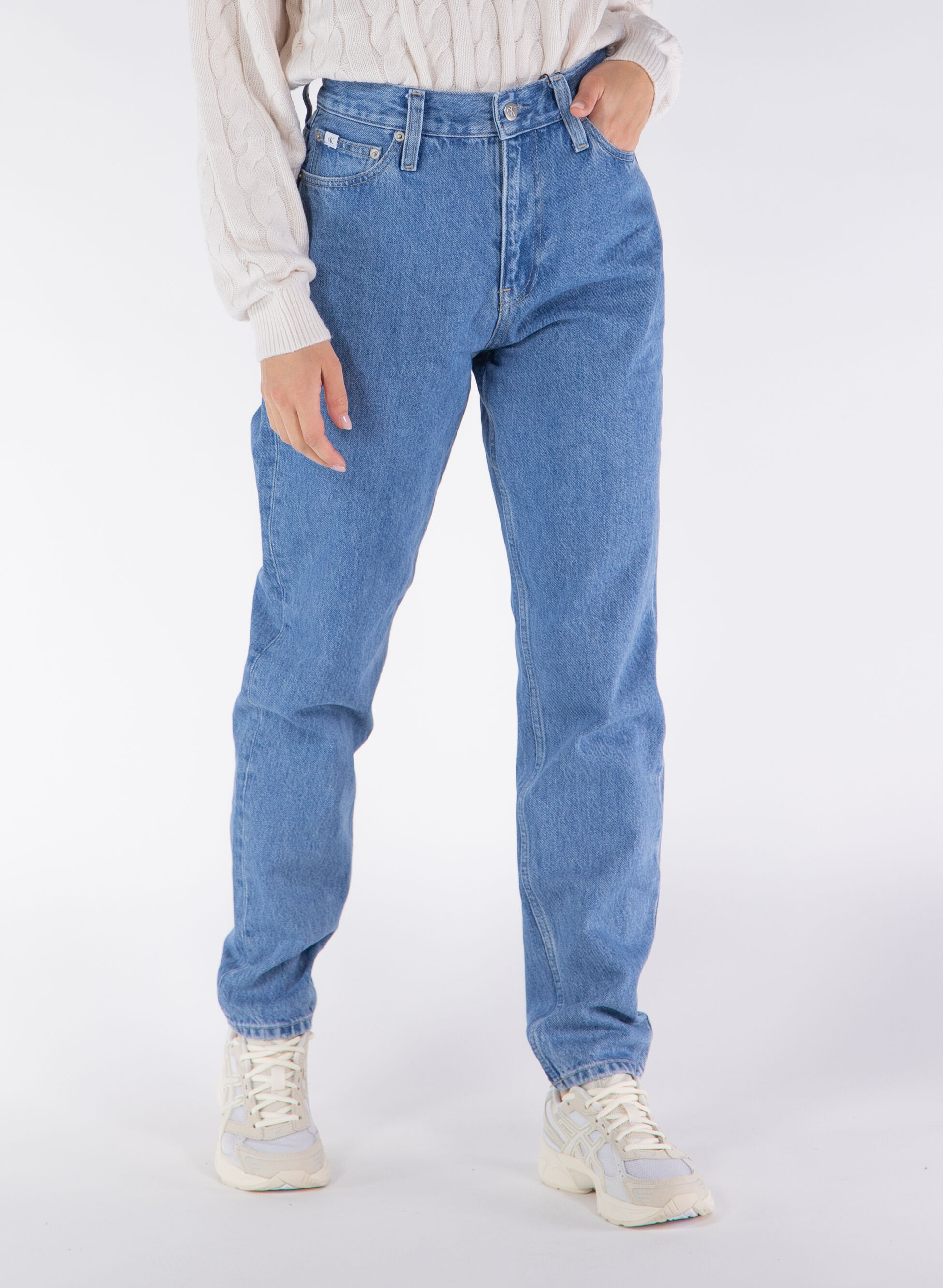 Mom fit: vita alta, gamba diritta e aderente lungo i fianchi.