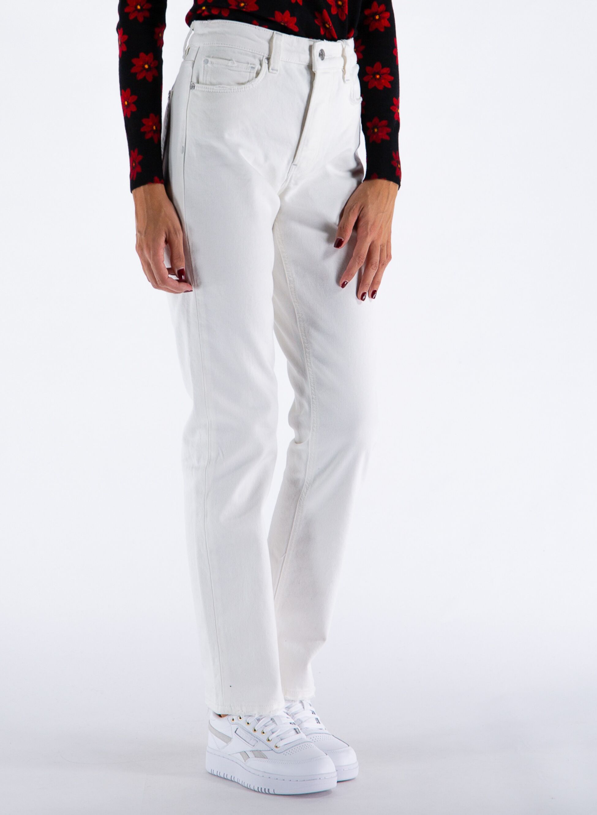 Design con vita alta e gamba dritta.