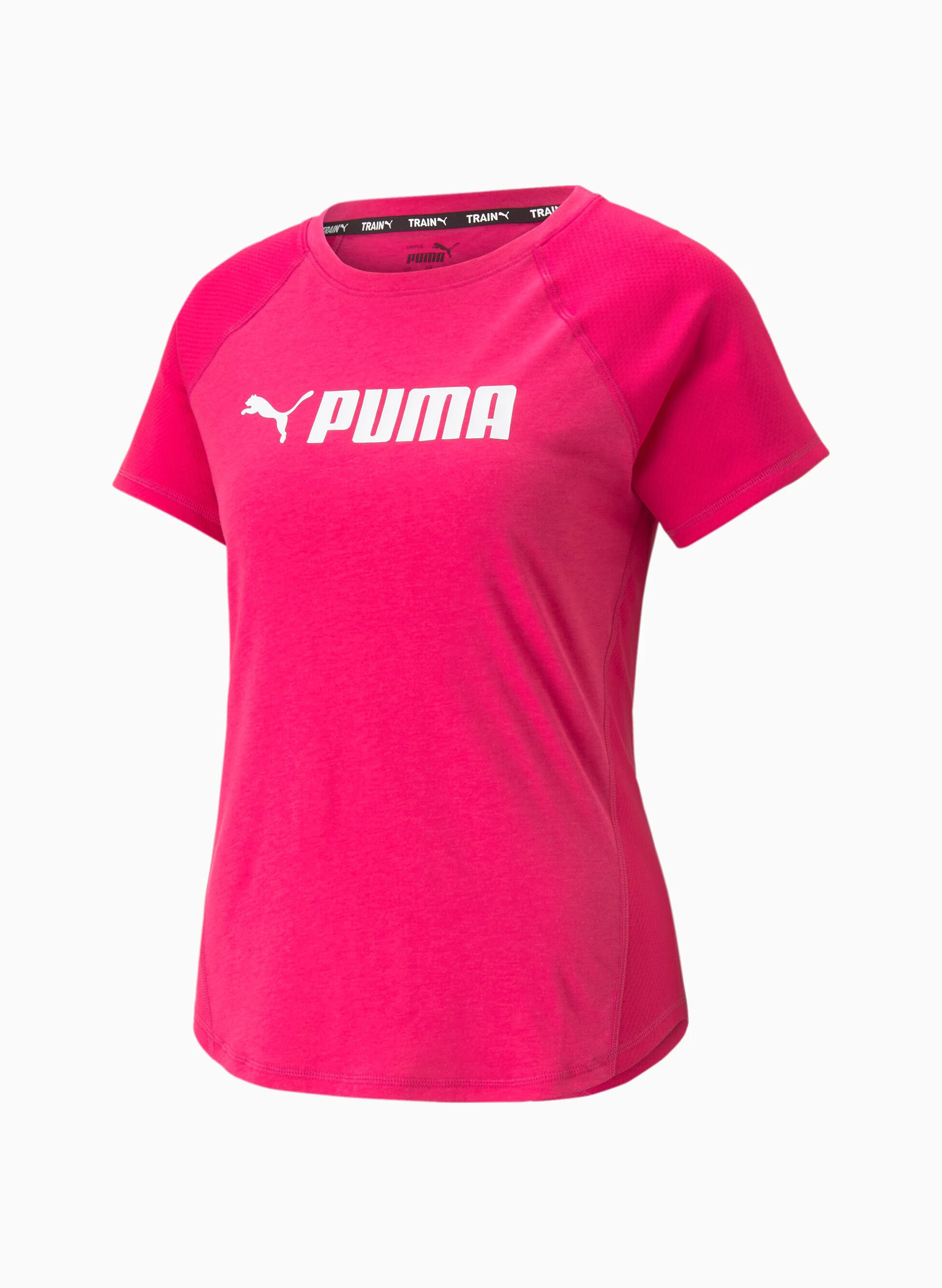 Maglia da training da donna firmata Puma realizzata in tessuto DryCell elasticizzato e caratterizzata da maniche raglan traspiranti. Logo a contrasto sul petto.