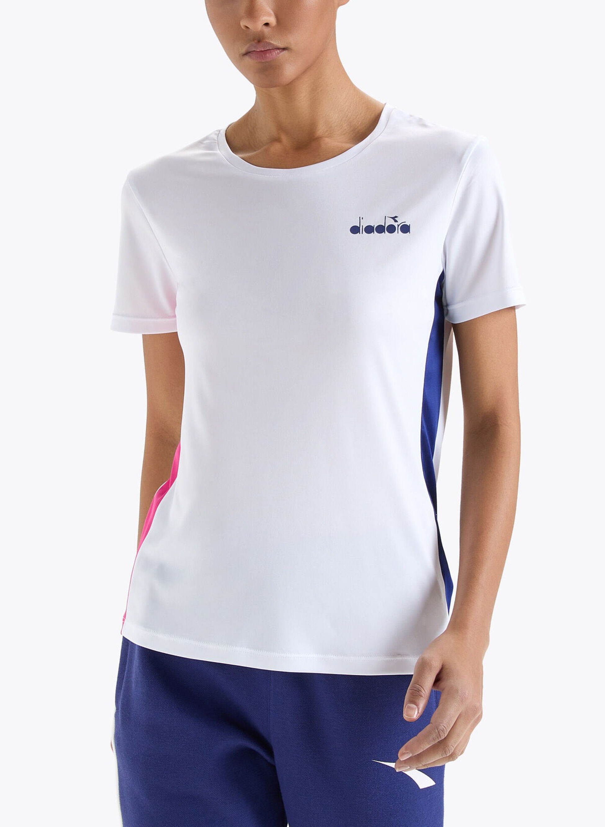 Stampa con logo lettering Diadora a sinistra.