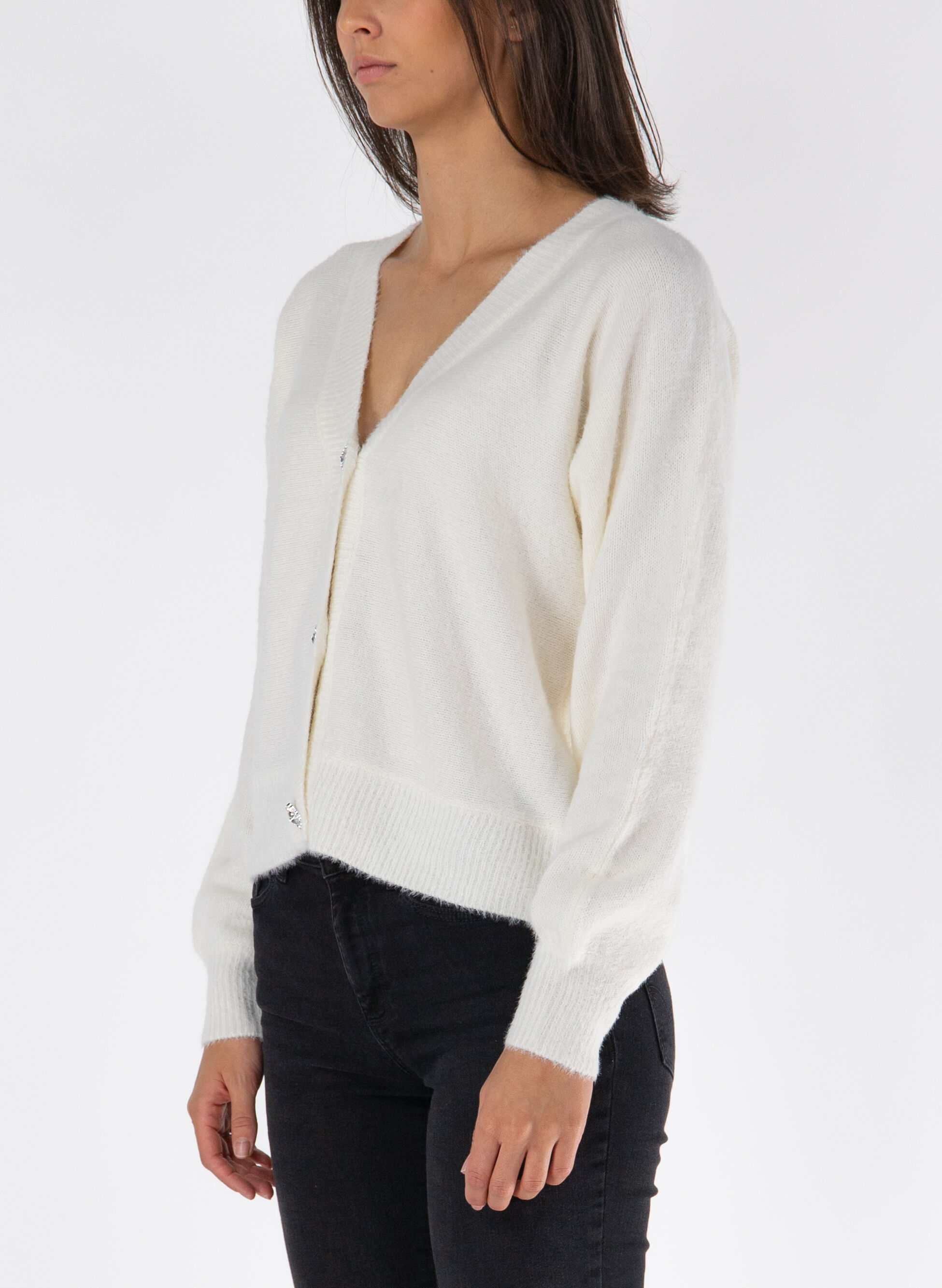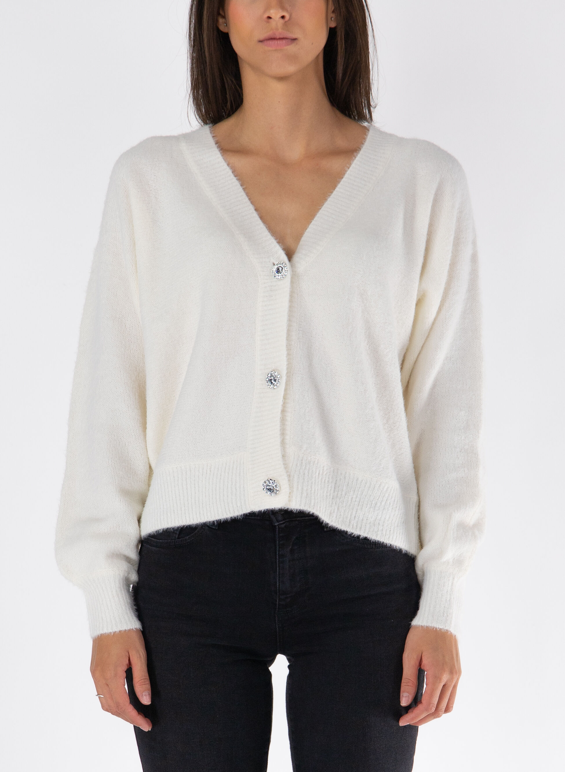 Cardigan Only da donna realizzato in misto viscosa con scollo a V profondo e caratterizzata da bottoni gioiello.