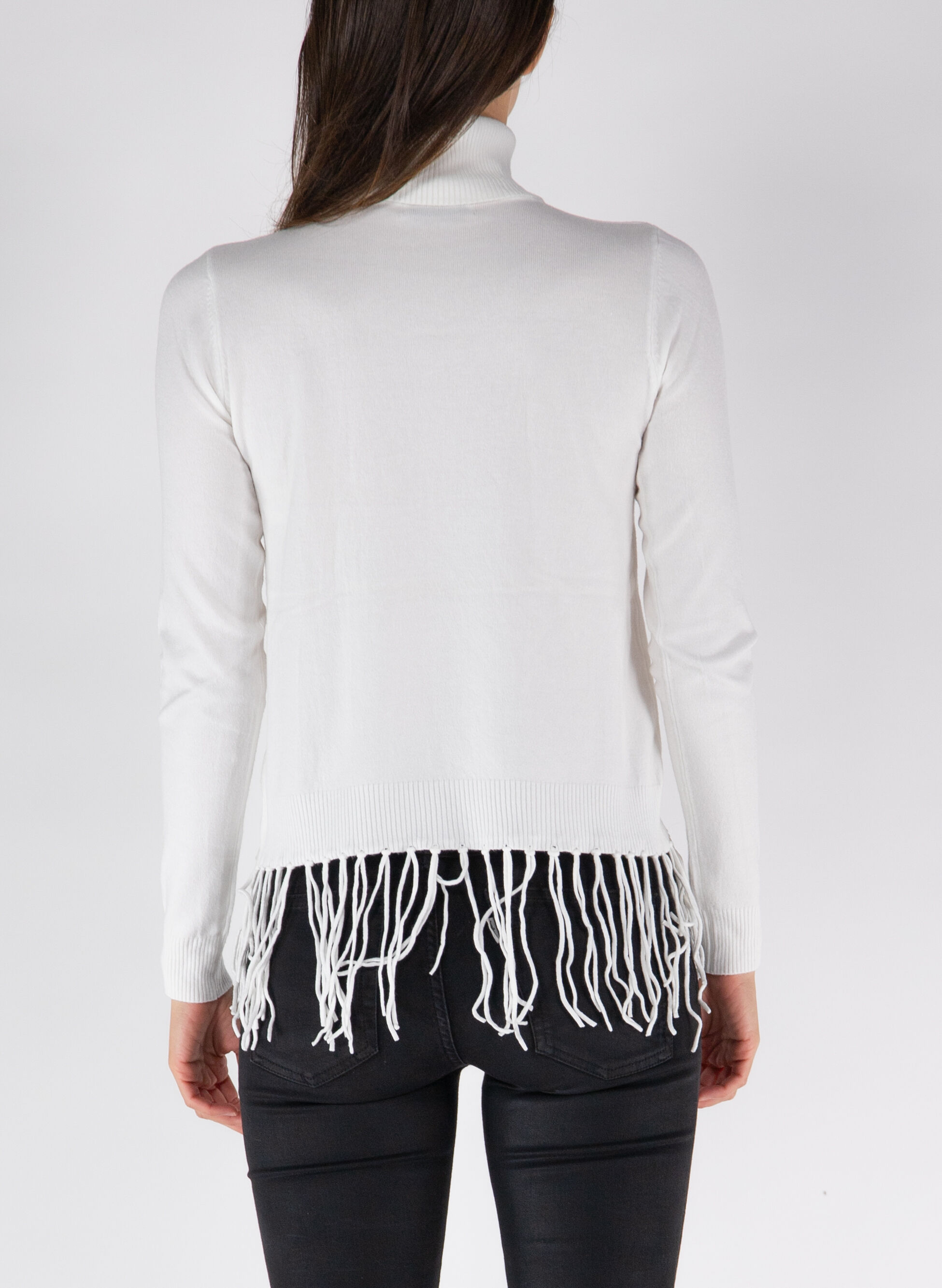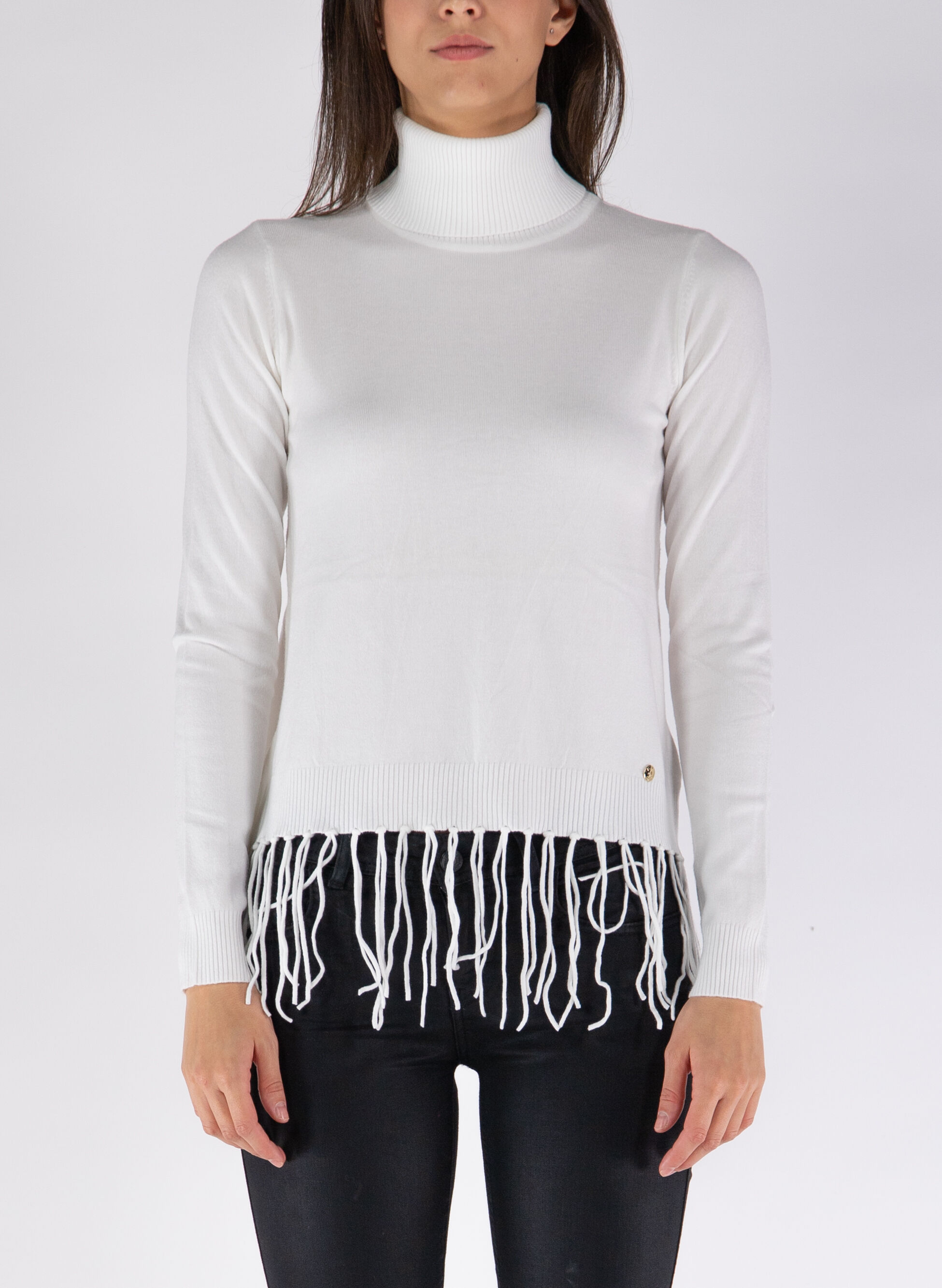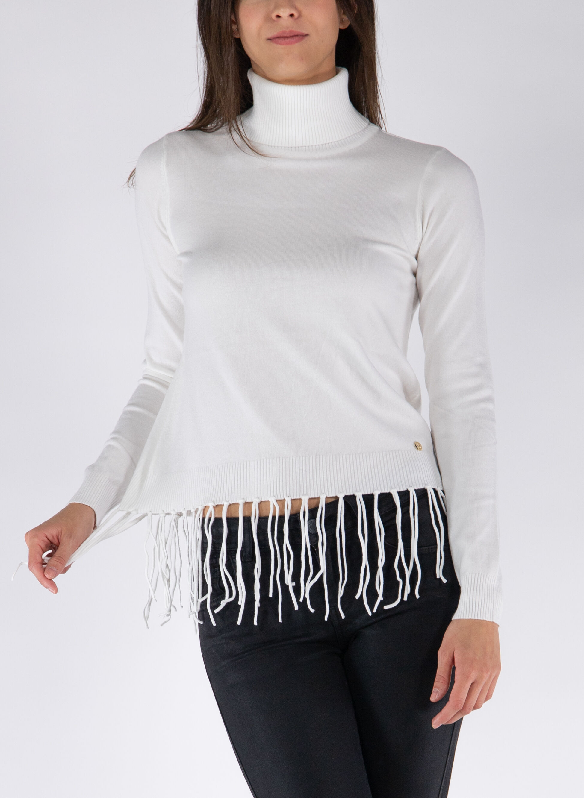 maglione collo alto frange