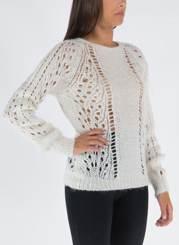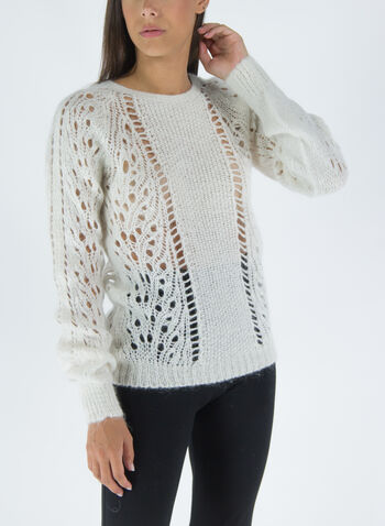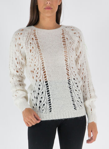 Maglione da donna traforato dal taglio regolare con scollo a giro.