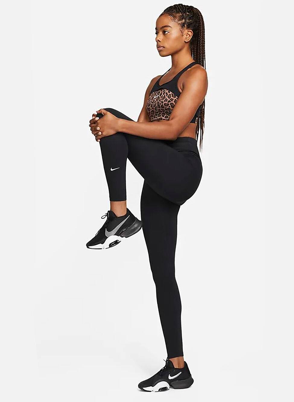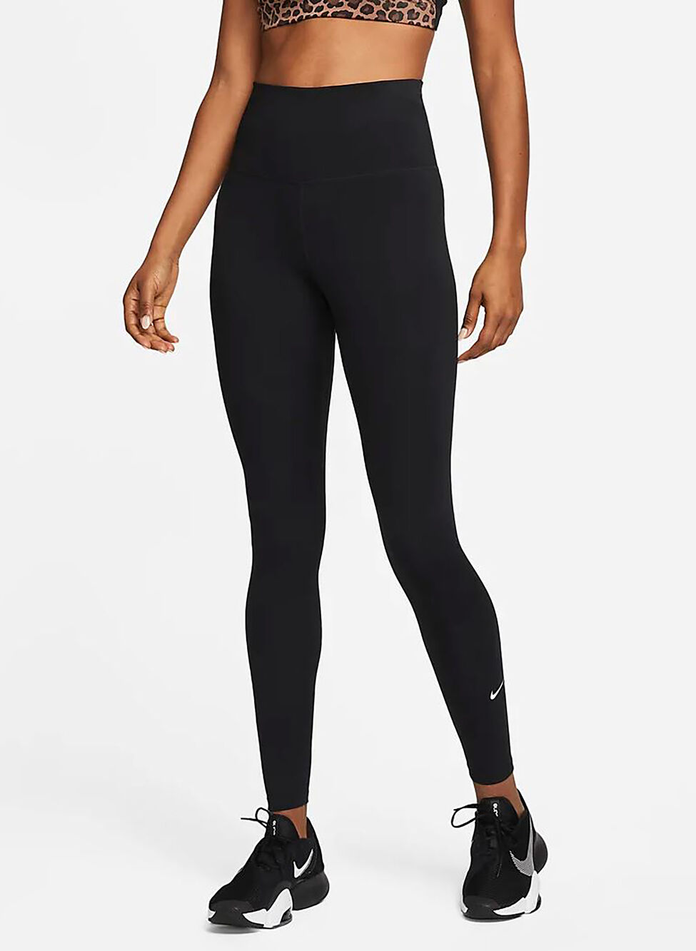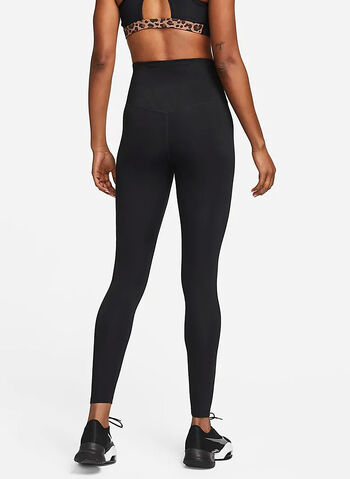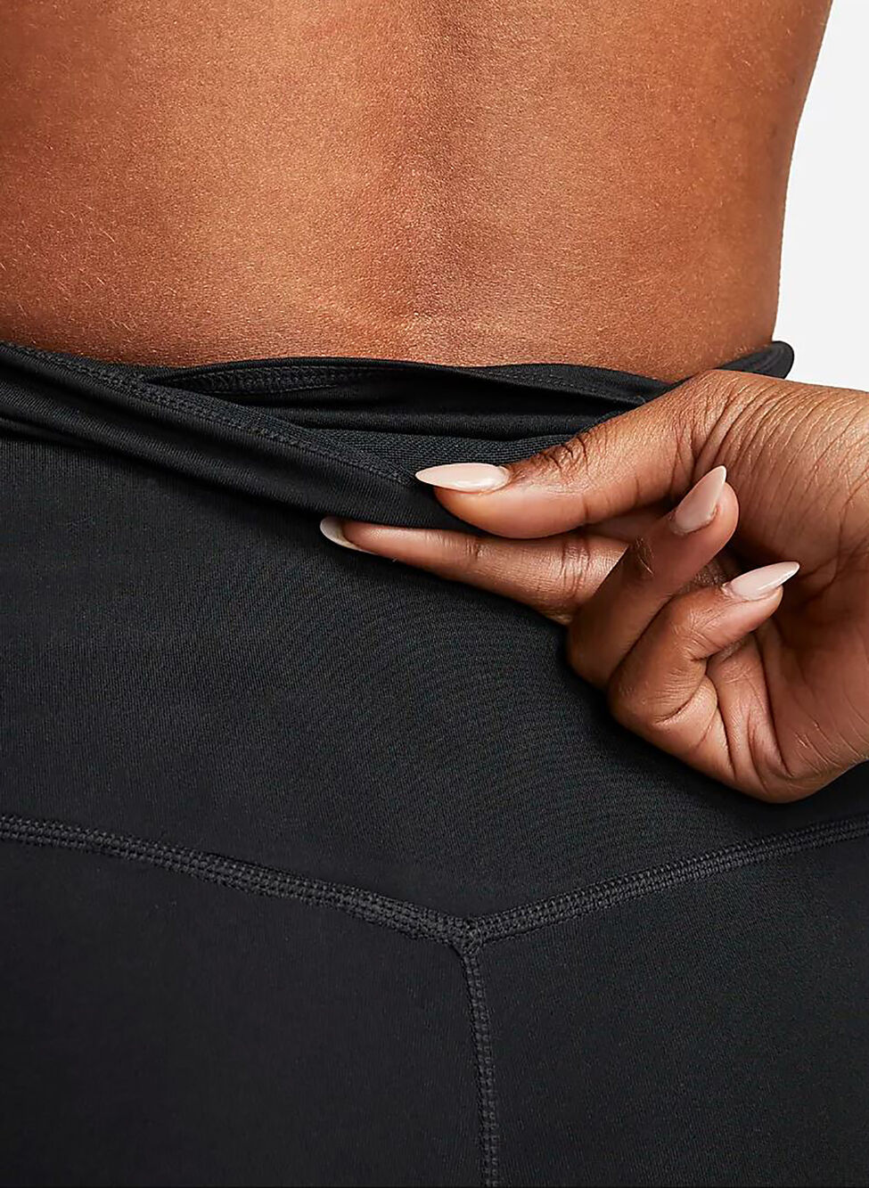 Tasca nascosta nella fascia a vita alta e logo Nike sulla gamba.