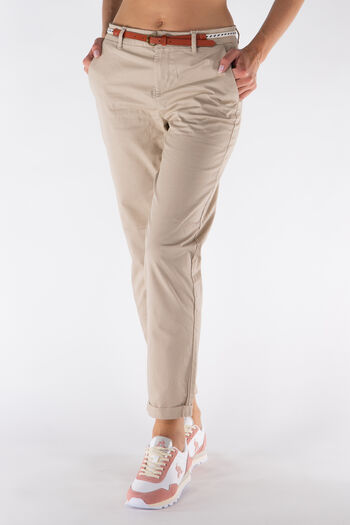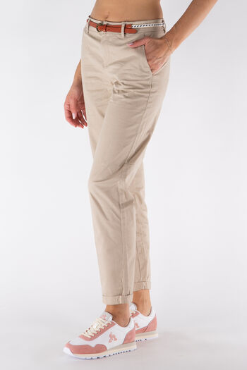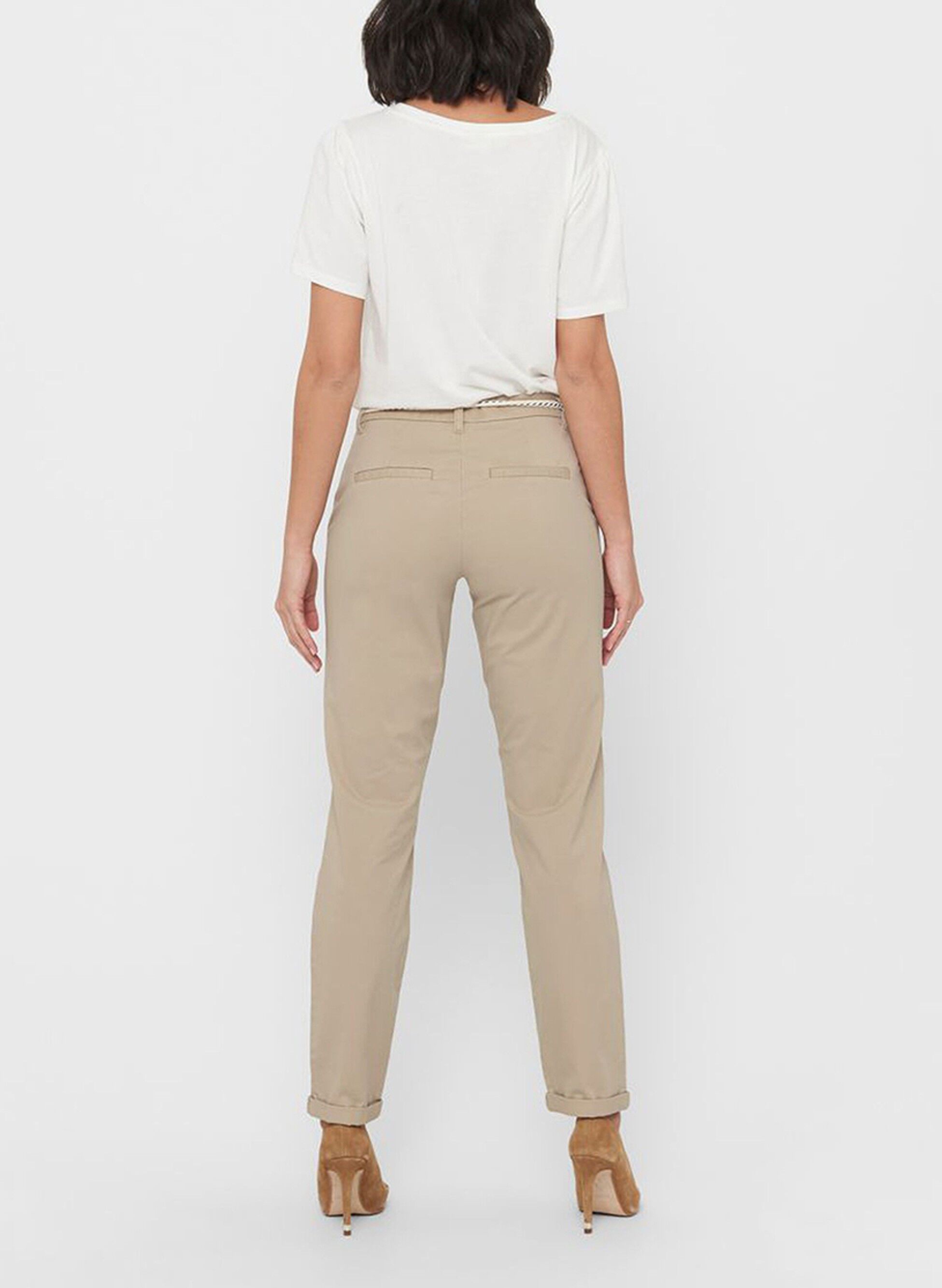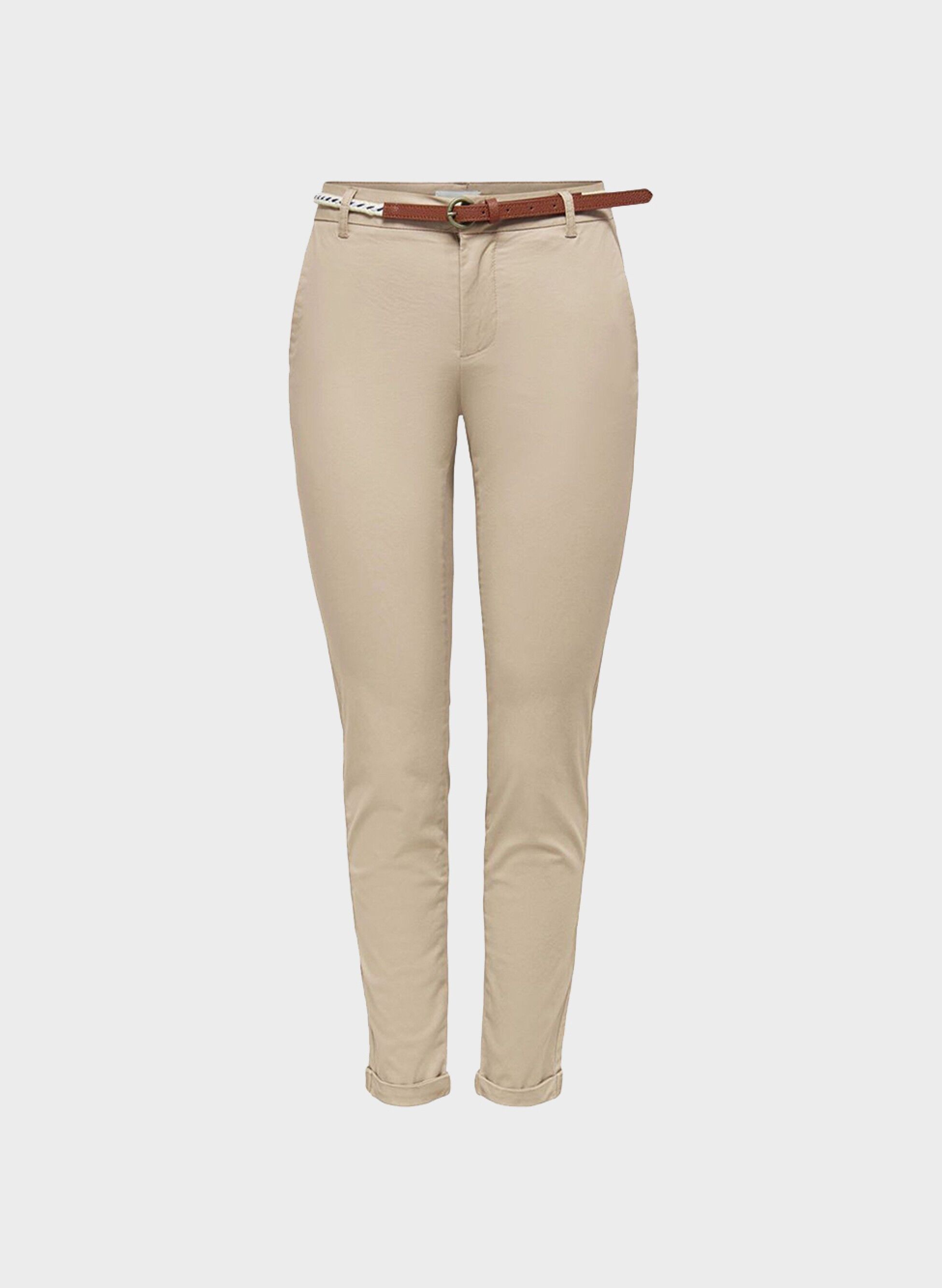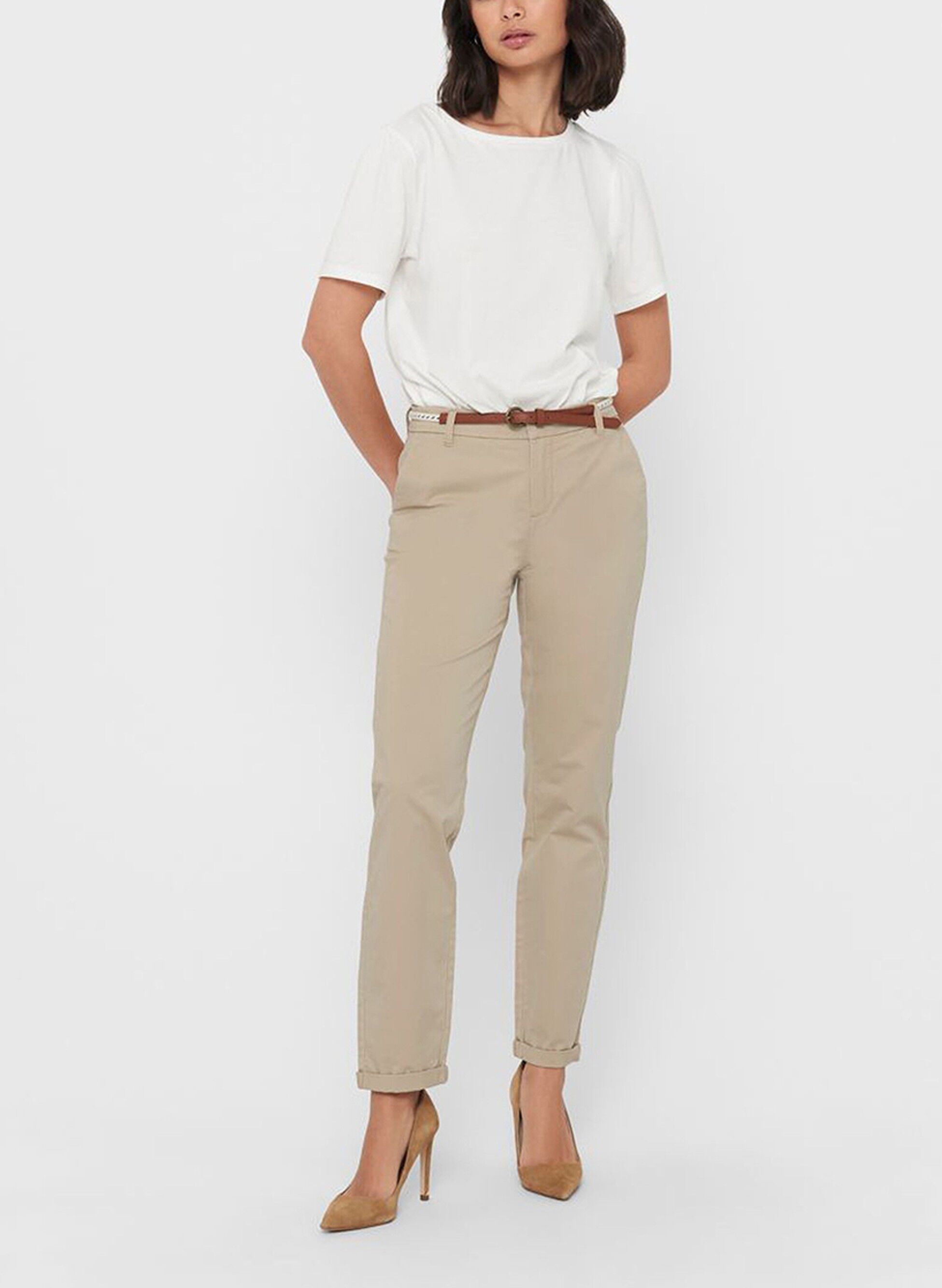 Il pantalone Only da donna presenta un taglio chino in tinta unita con cintura dettagliata in vita.