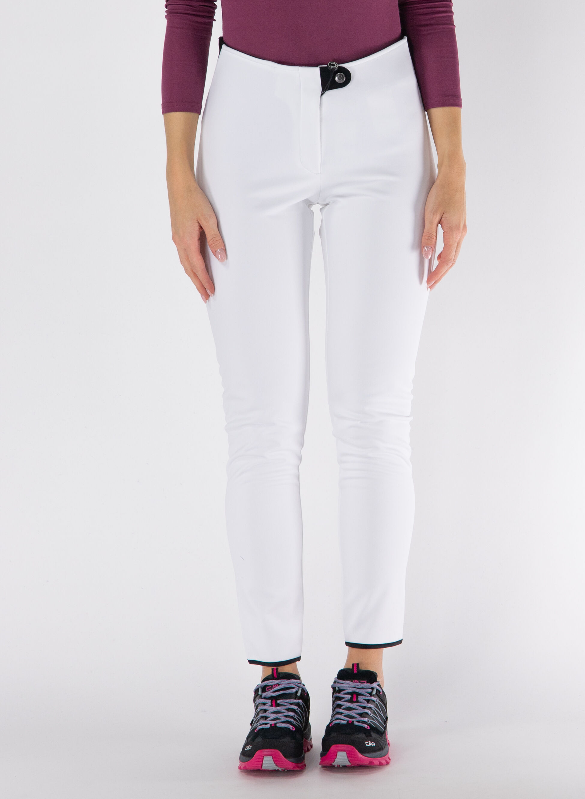 I pantaloni da sci da donna, della linea Freeride, sono il capo ideale per le sciatrici che ricercano una vestibilità impeccabile e un look femminile, unito a qualità e comfort. Sono realizzati in tessuto tecnico, composto da una maglia esterna elasticizzata e da un interno in morbido pile, accoppiati attraverso una membrana che conferisce un ottimo valore di impermeabilità di 10.000 mm di colonna d'acqua ed elevata traspirabilità. Si contraddistinguono per lo schienalino sagomato, che ripara dal freddo, e per gli inserti elastici sui fianchi, che ne esaltano il fitting aderente e femminile. Il fondo consente di inserirli comodamente nello scarpone e nel doposci in modo pratico e veloce.
