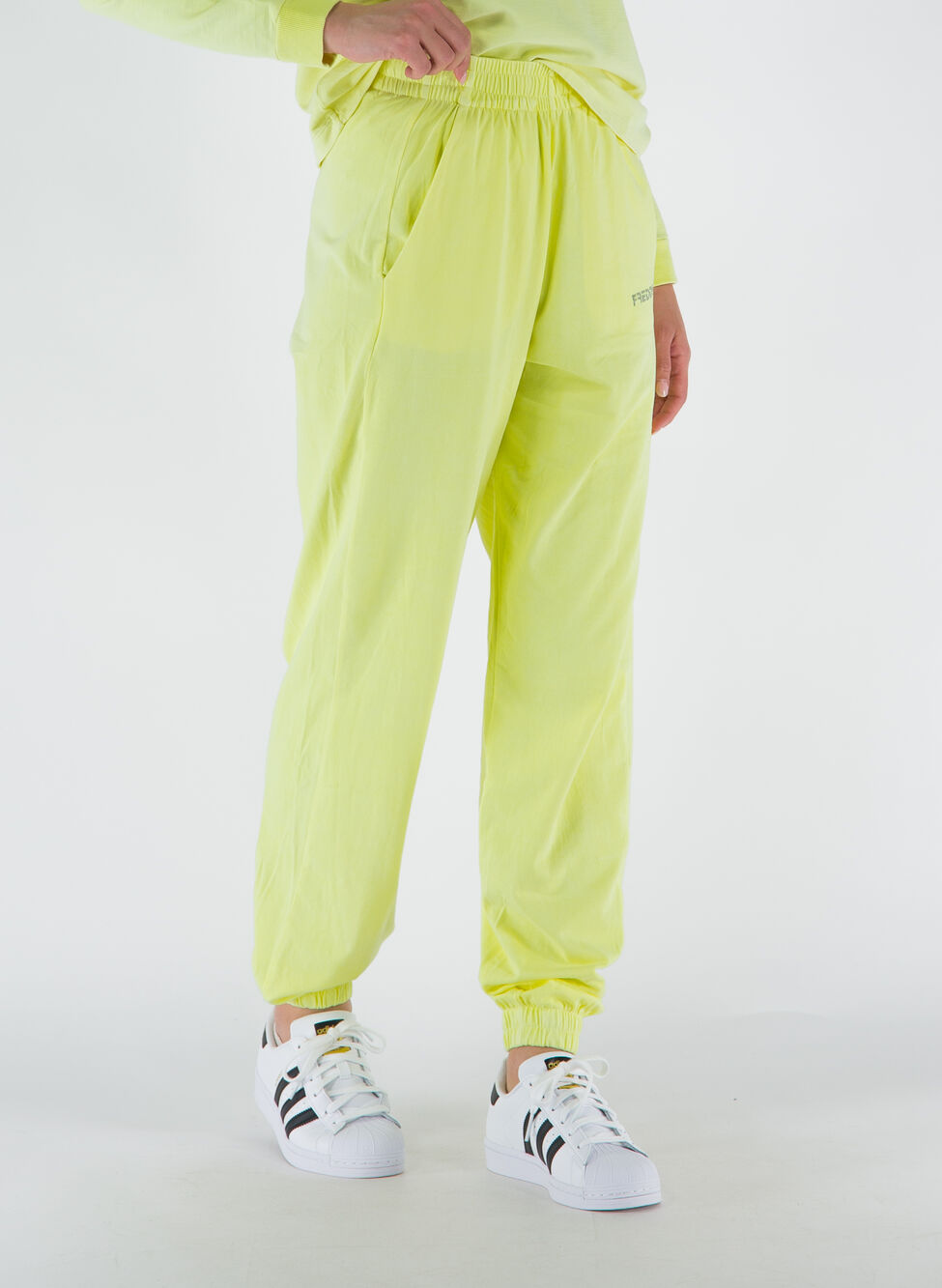 Pantalone sportivo realizzato in jersey elasticizzato in colore fluo adatto al tempo libero.