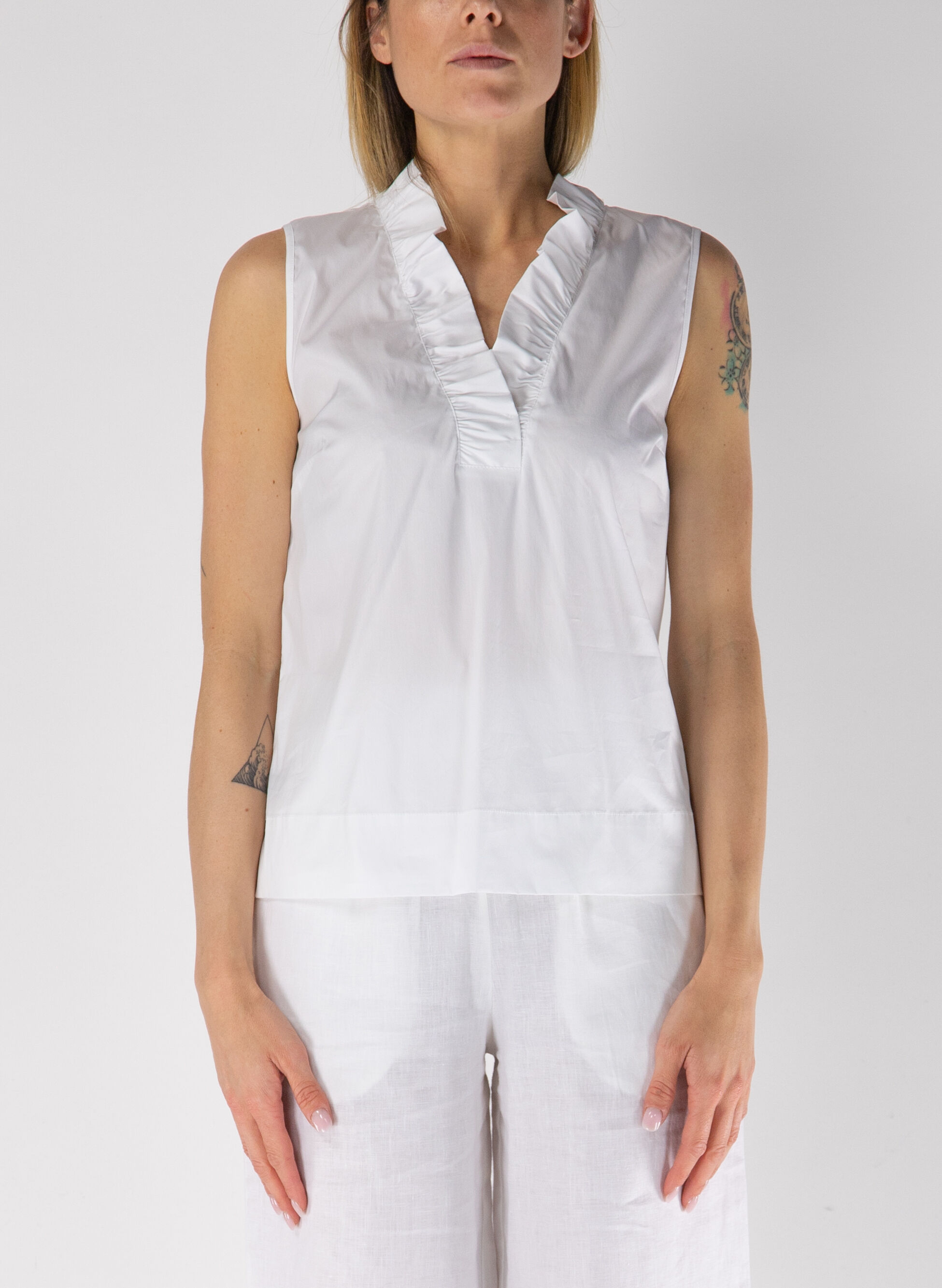 blusa scollo v plissettato