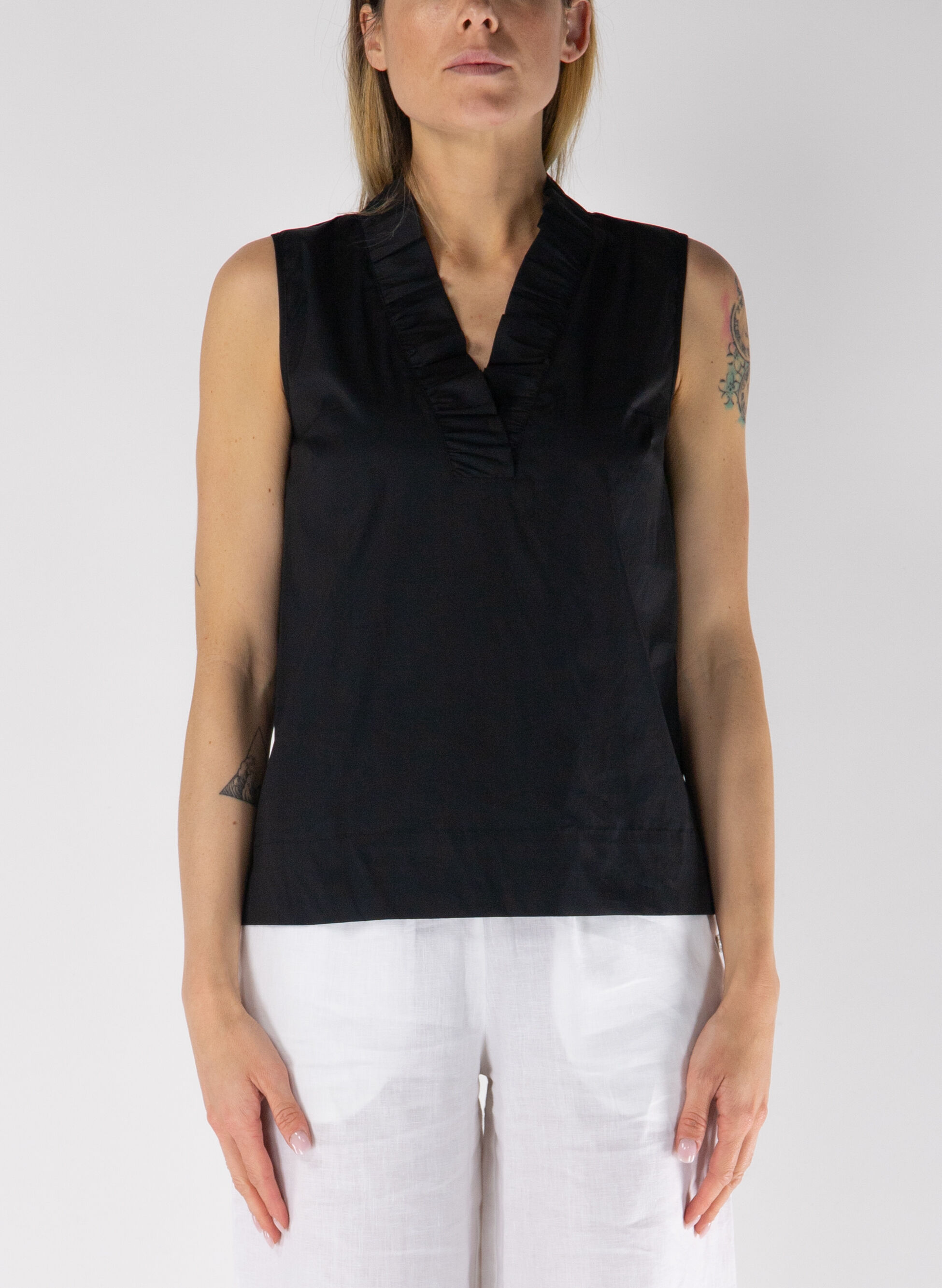 blusa scollo v plissettato