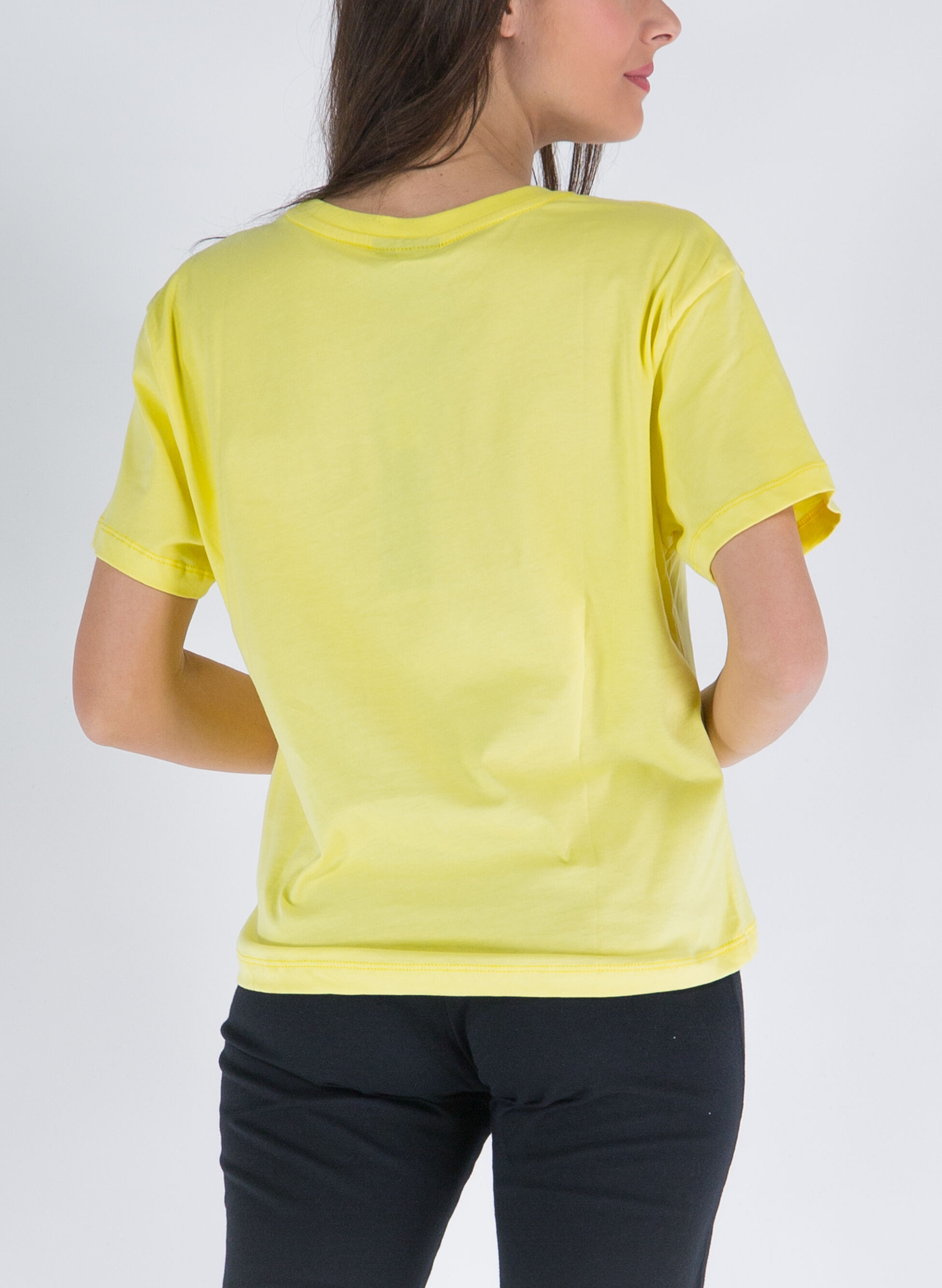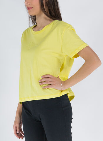 T-shirt crop da donna con girocollo a costine e maniche corte realizzata in morbido jersey di cotone.