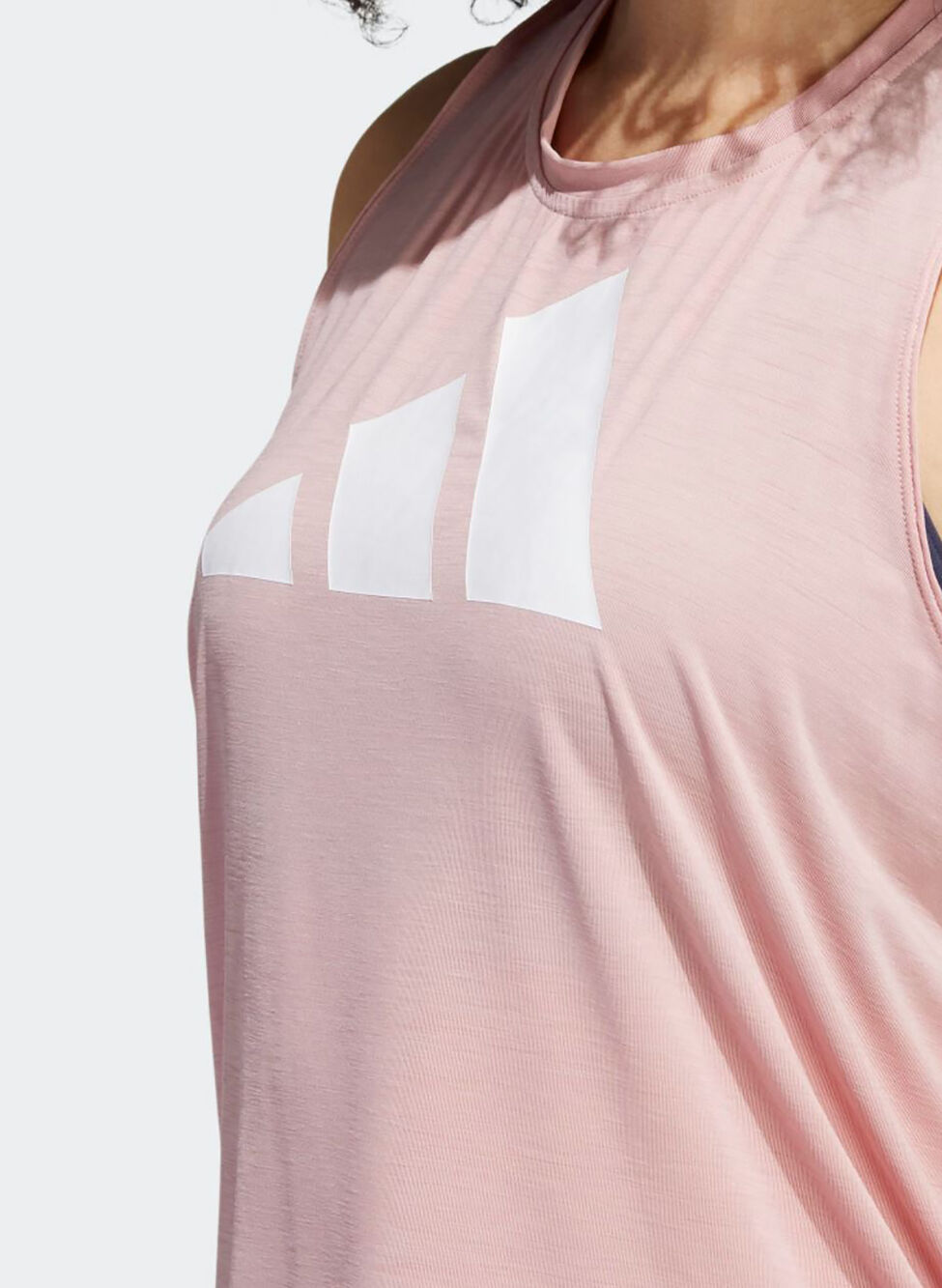 Canotta donna a girocollo da allenamento di Adidas con tecnologia antiumidità AEROREADY dal tessuto morbido e leggermente più lungo sul retro, ideale per il vogatore o la cyclette.