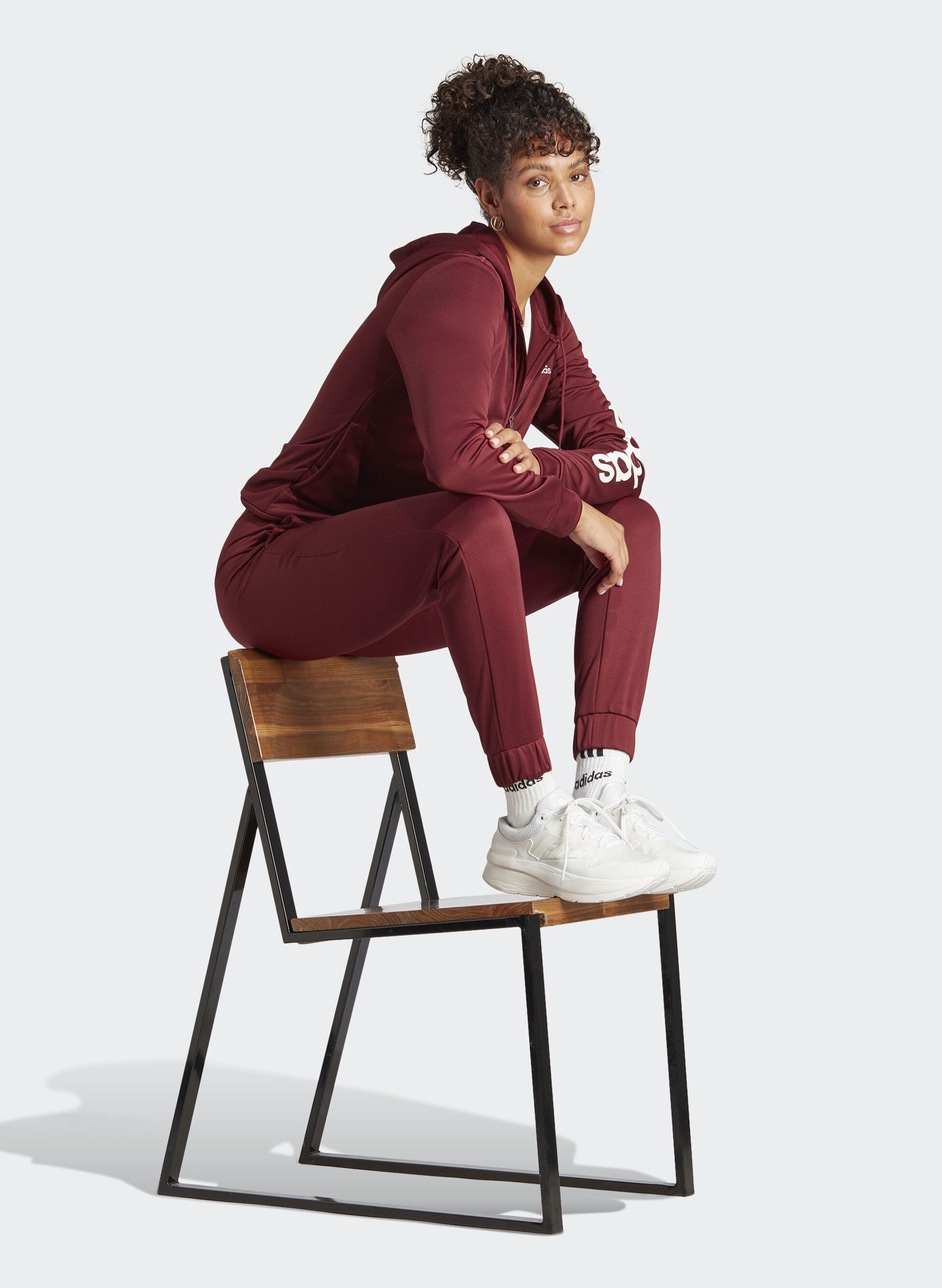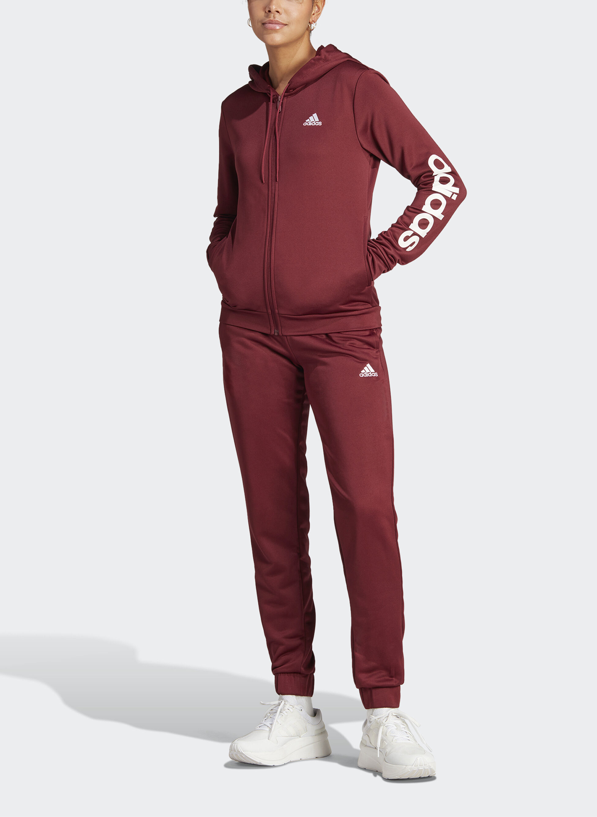 Tuta da donna di Adidas garzata con chiusura full zip e cappuccio.