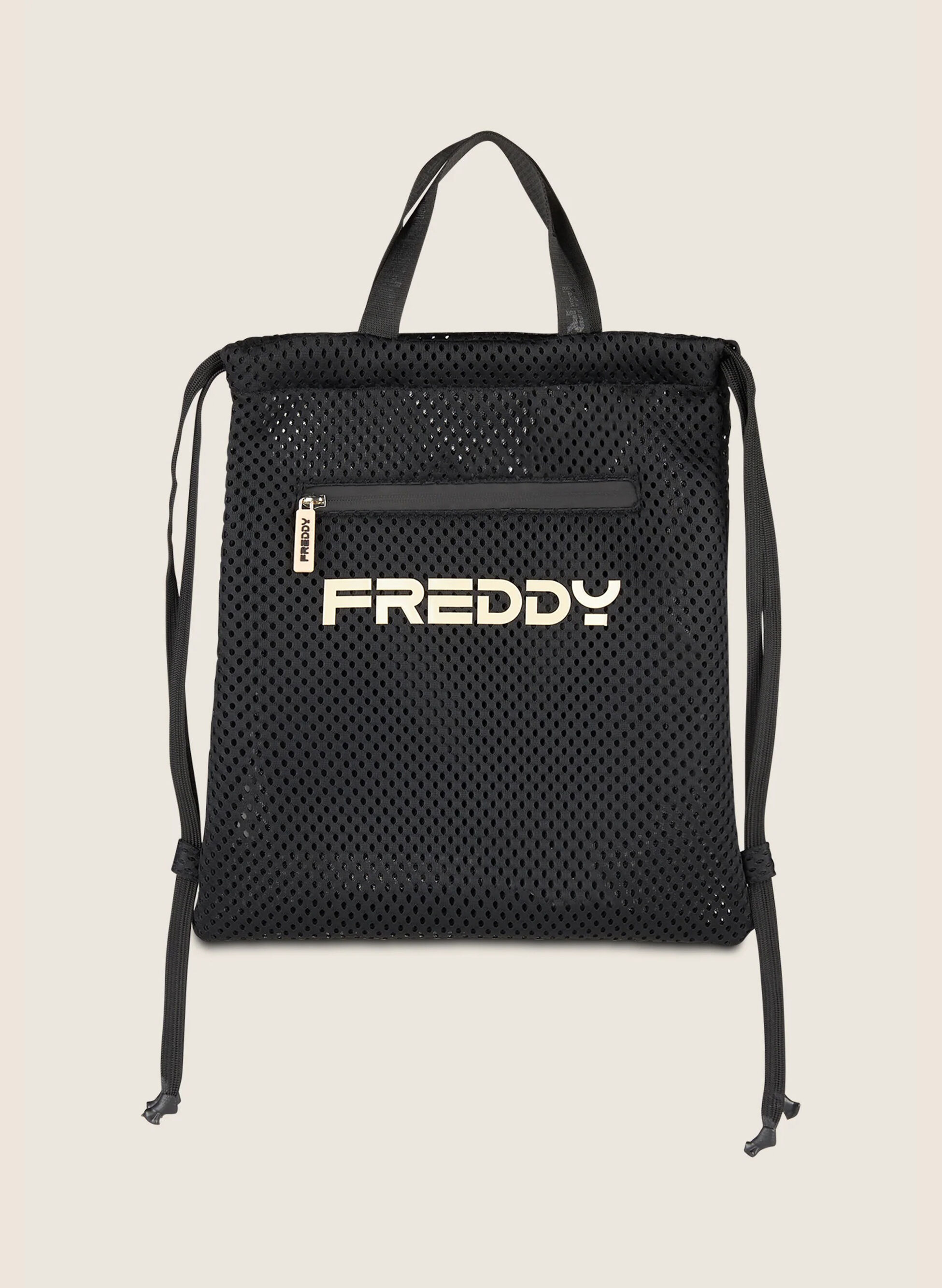 Sacca zaino pensata per un uso pratico e quotidiano. La struttura traspirante con rete a fori aperti aiuta la ventilazione, mentre gli spallacci a doppio cordino e i manici offrono più modalità di trasporto. La chiusura a coulisse facilita l’accesso e la tasca frontale interna con zip aiuta a riporre piccoli oggetti in sicurezza. Dimensioni indicate: 33,5 x 40 cm.