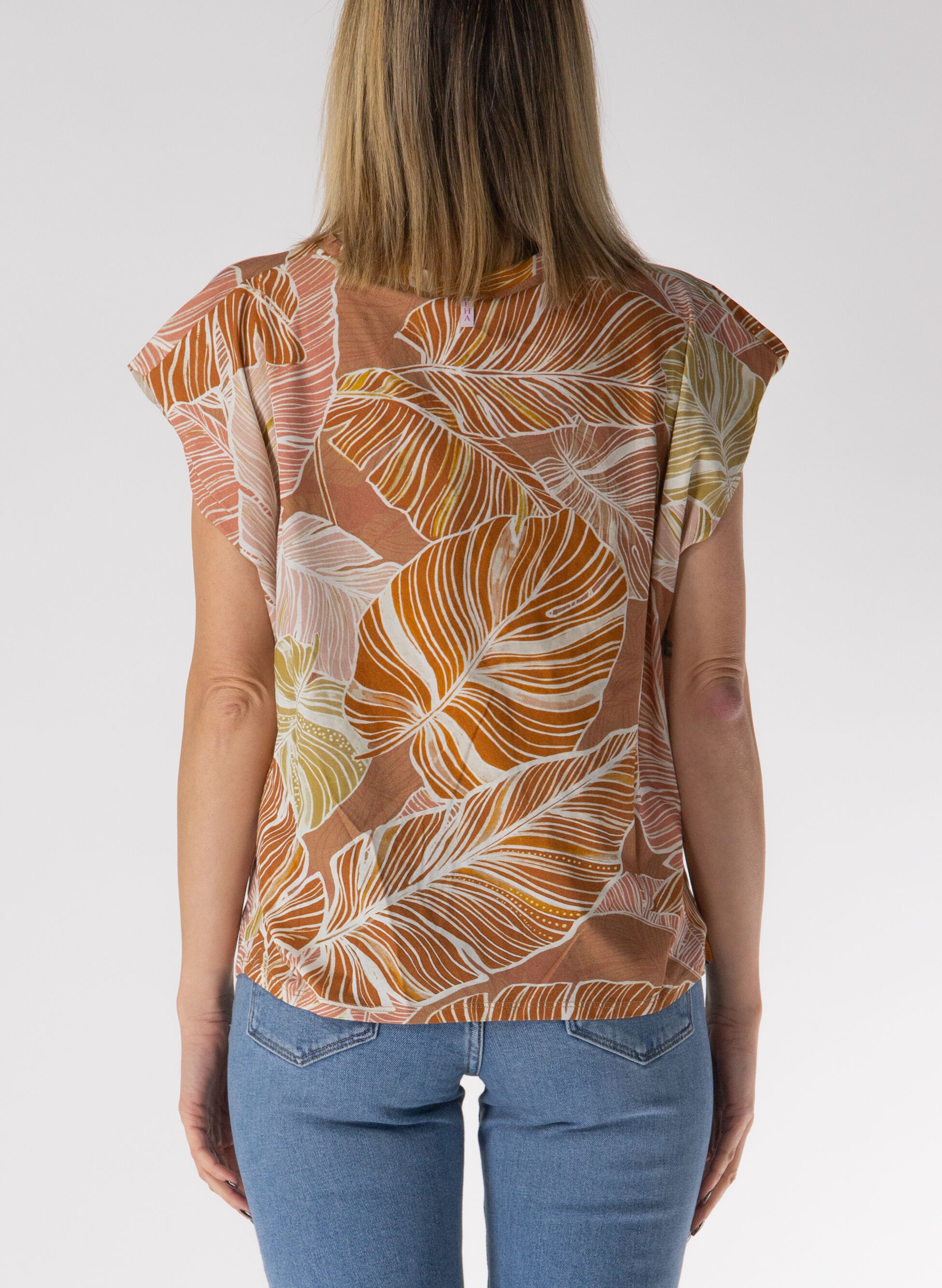 t-shirt girocollo con stampa a fantasia