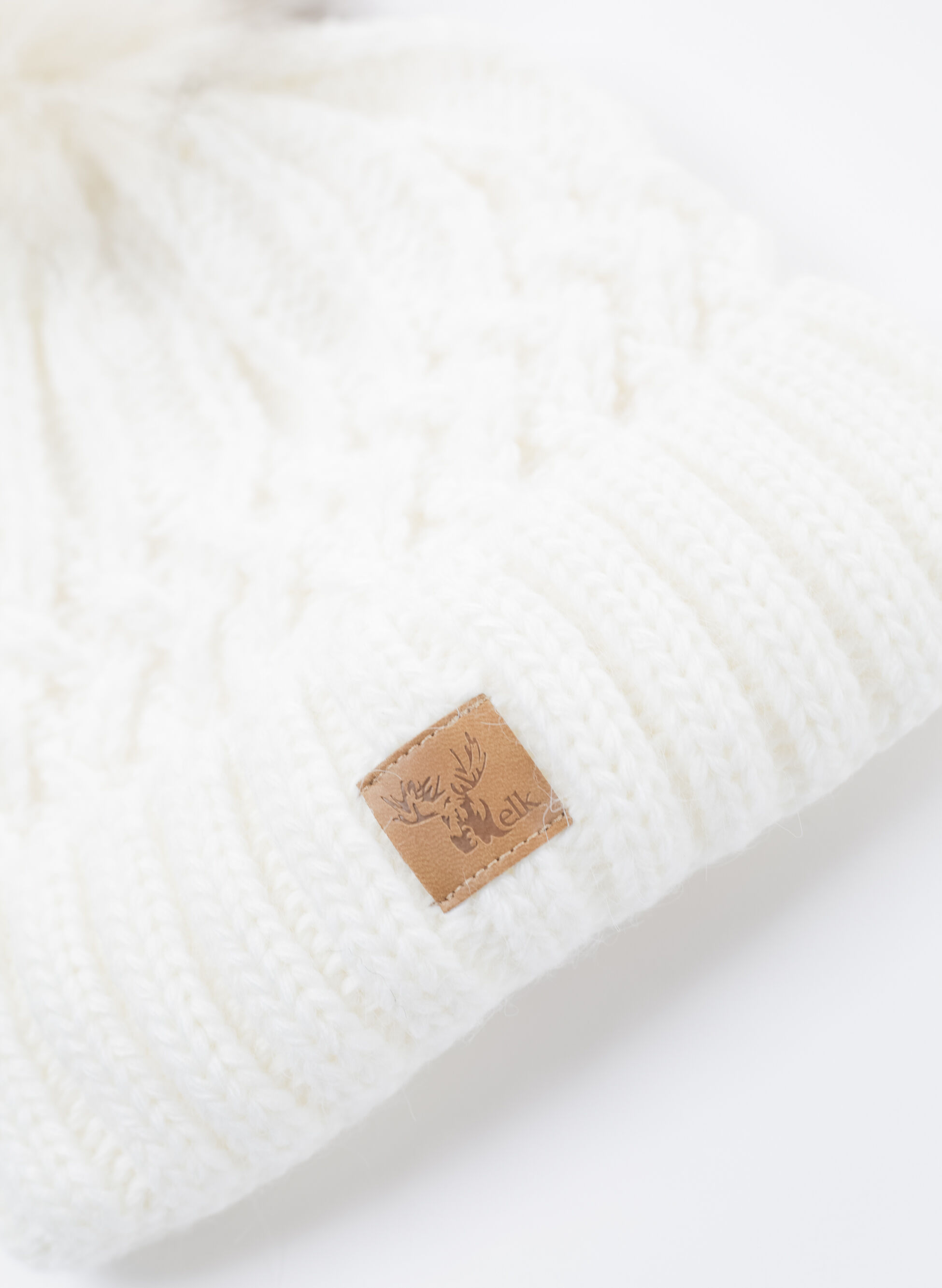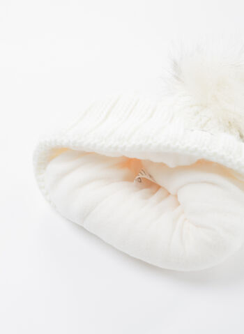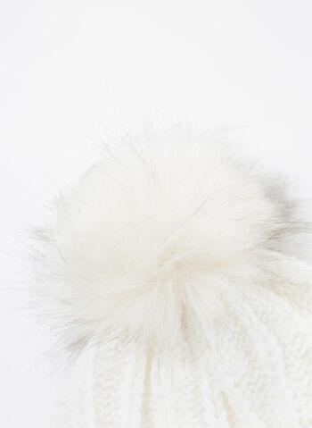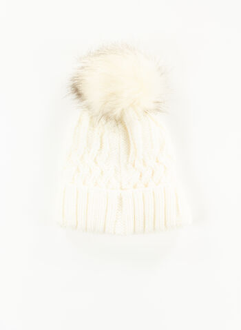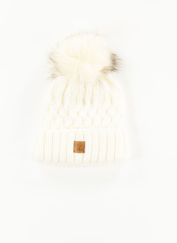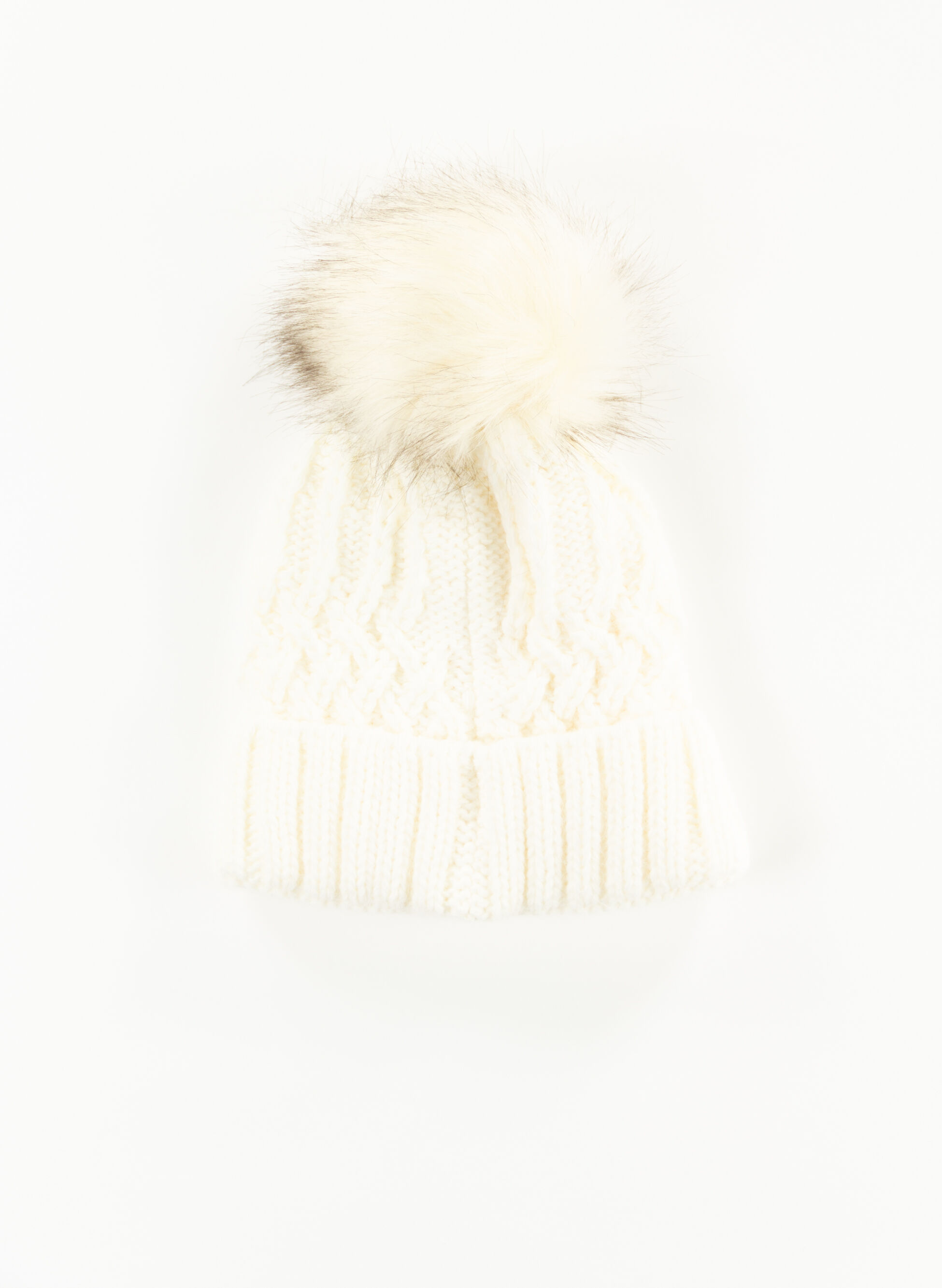 Cappello da donna lavorato a maglia con motivo a treccia con risvolto e pon pon in pelliccia sintetica.