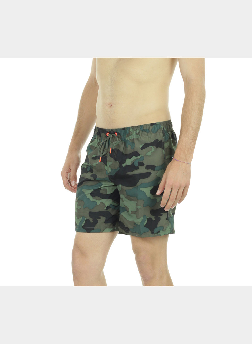 Boardshort lungo a vita bassa in poliestere leggero stampa camouflage.