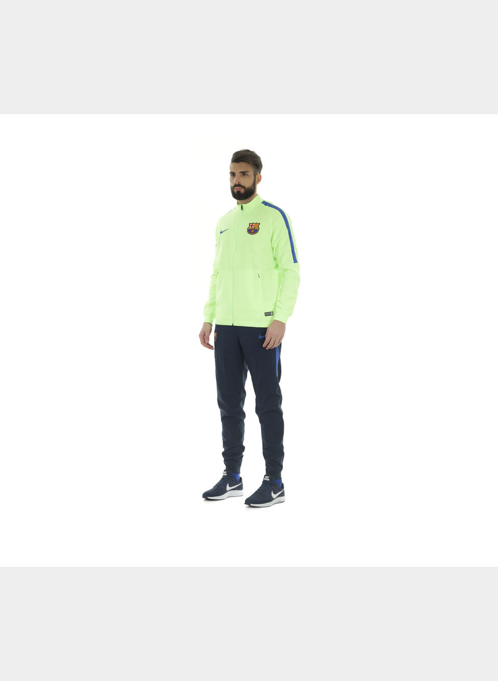 La tuta da calcio da rappresentanza 2016/17 F.C. Barcelona da uomo è composta da track jacket e pantaloni aderenti realizzati in tessuto traspirante e dotati di inserti ergonomici per il massimo comfort in campo.