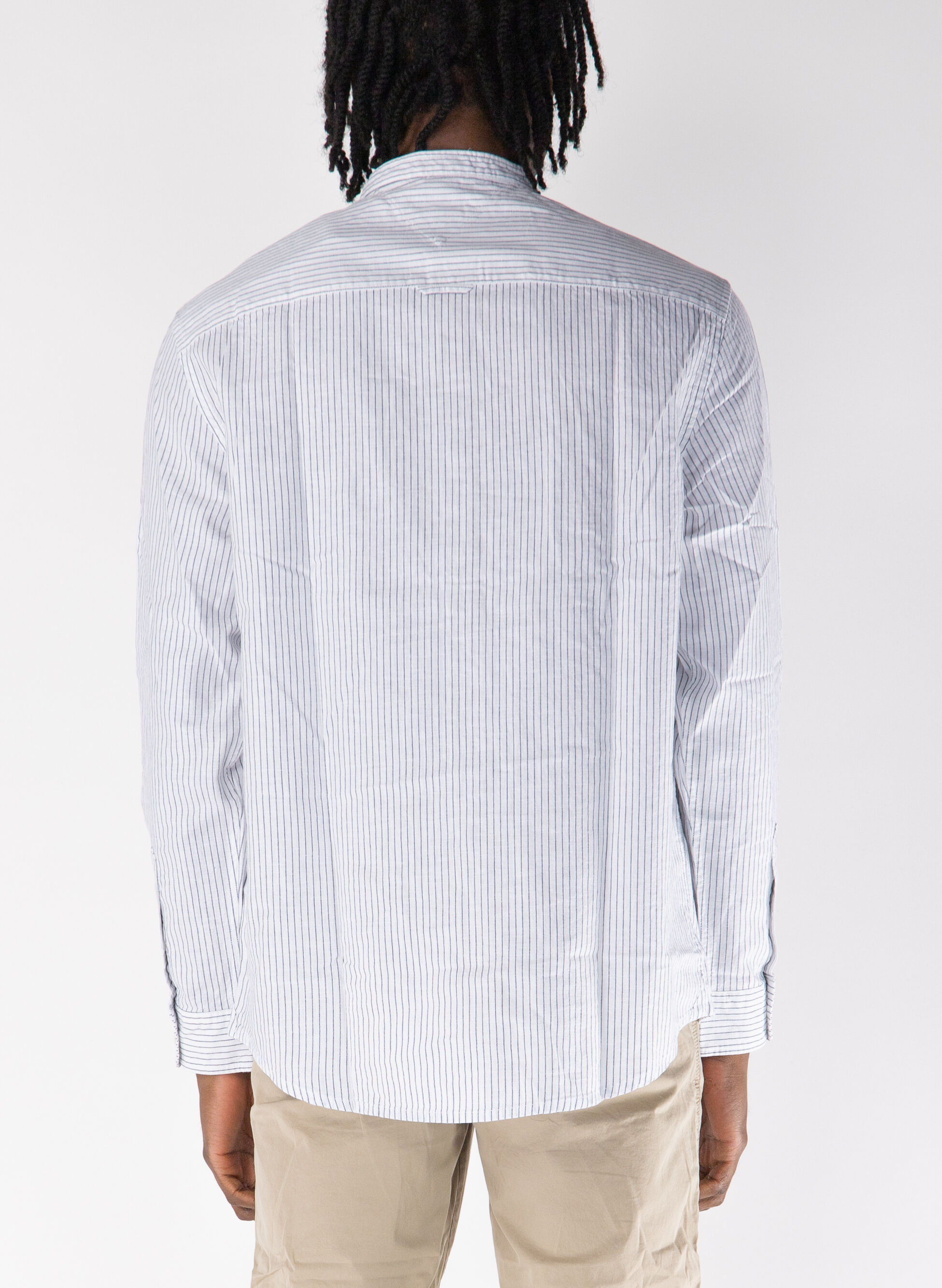 camicia a righe con collo alla coreana